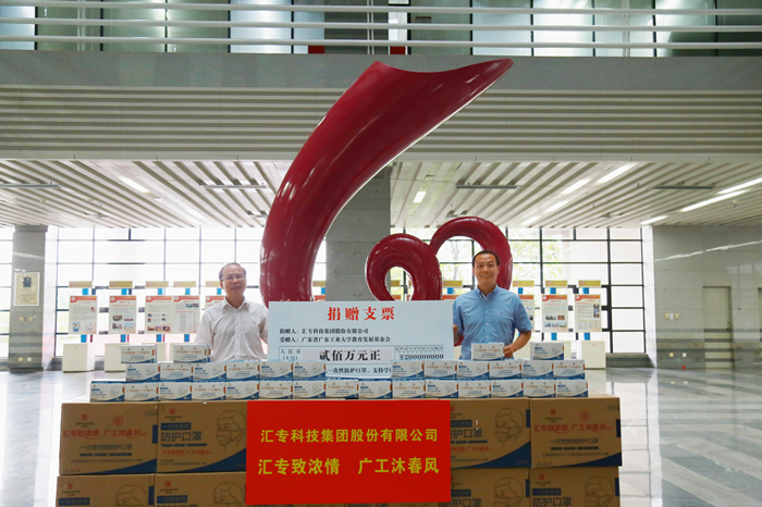 汇专科技除了此次向广工捐赠150万只口罩外,之前已向学校作了多次捐赠:捐助在学校举行的国际国内会议活动;大力支持大学生体育活动:冠名赞助2018年“汇专杯”全国大学生篮球精英邀请赛、广工“阳光长跑”活动;为广工合作团队的患病贫困研究生一次性捐款30万元,全力支持完成骨髓移植手术等。