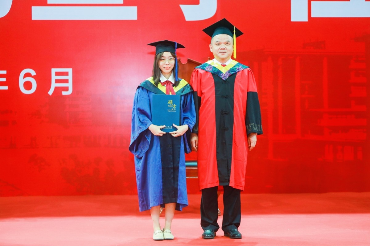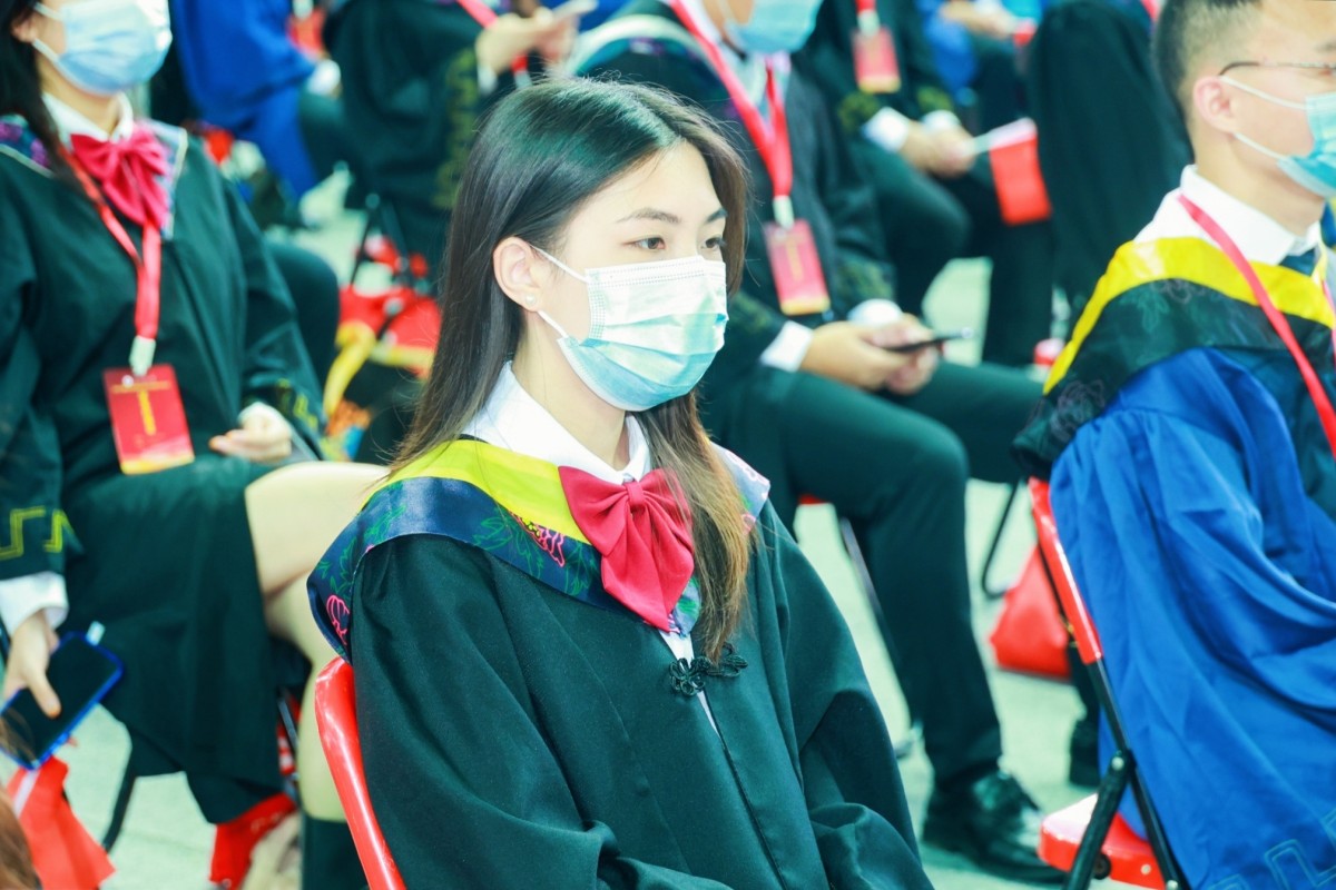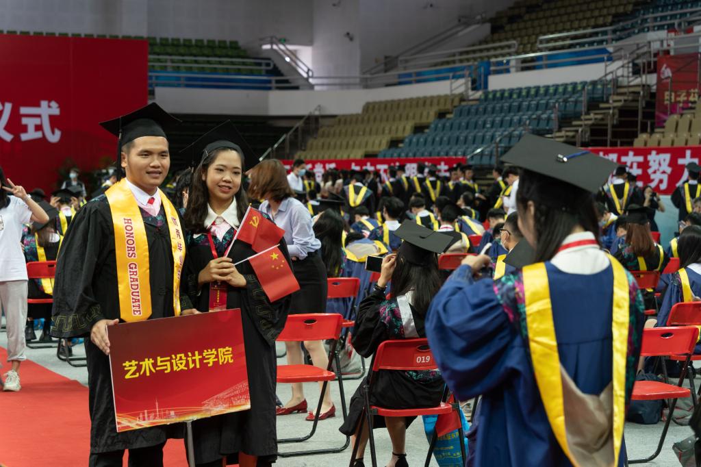 广工今年共授予406名学生“2021届优秀毕业生”荣誉称号,学校党委书记胡钦太为优秀毕业生代表颁发荣誉证书。