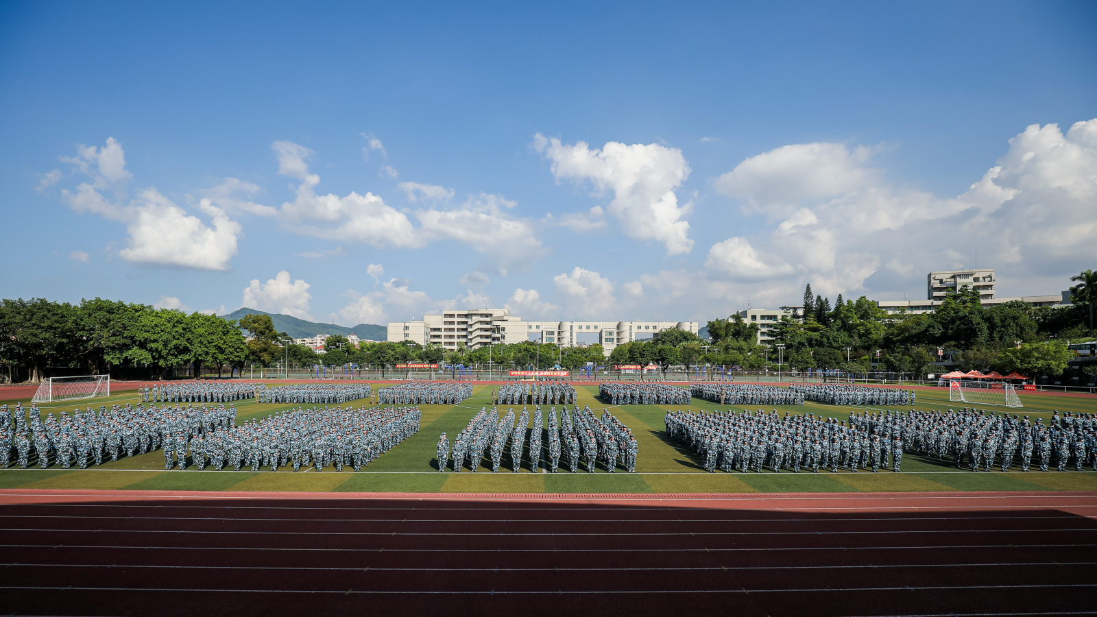 大会在雄壮的国歌声中拉开帷幕。“同学们好!”“同学们辛苦了!”胡钦太、邱学青、朱蔚蔚分别在三校区向教官和新生表示慰问,并向承担本次军训任务的深圳市宝安区人民武装部、广州市白云区人民武装部、深圳市龙华区人武部、陆军特种作战学院、惠来县人民武装部赠送锦旗。