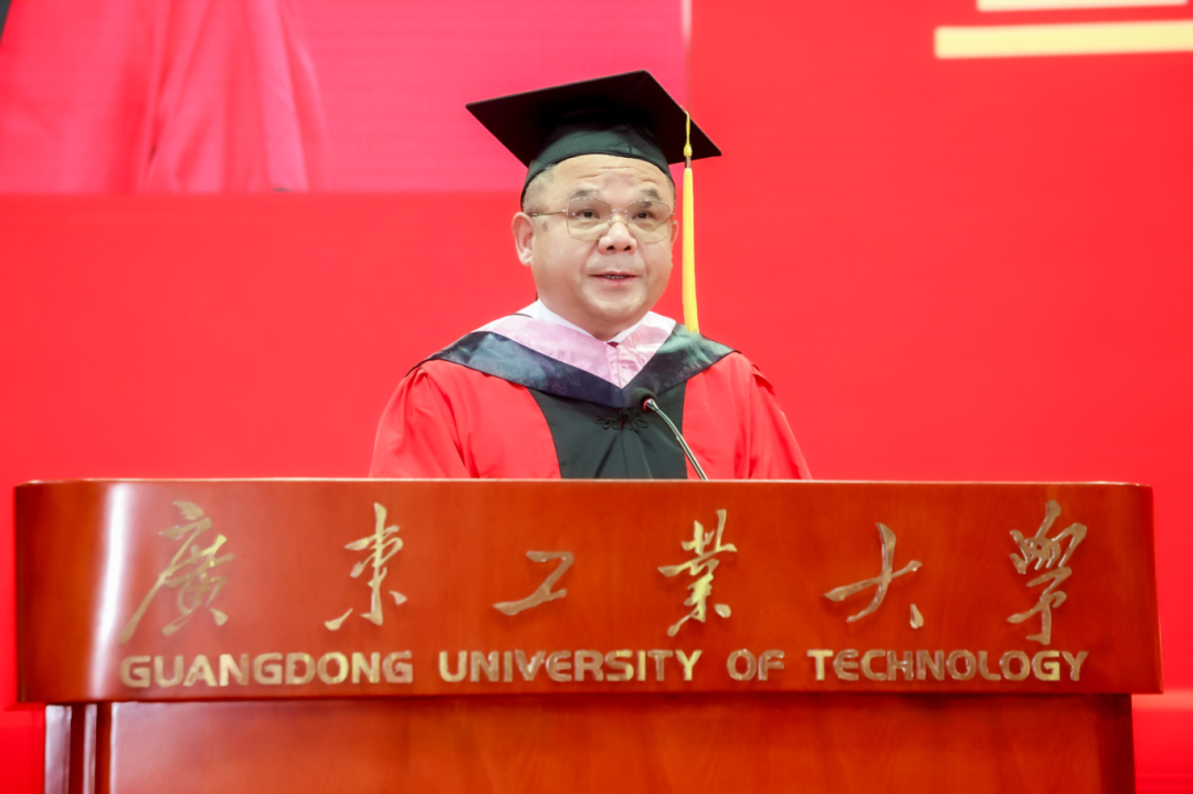 邱学青勉励同学们永葆广工精神,挺膺攀撑、向新突破,用青春的热情和力量担起时代重任,成为创造历史的新一代。第一,要立大志敢担当,成为强国建设的生力军。希望同学们用脚踏实地的行动回答好“强国建设,青年何为”的时代命题,将个人理想融入中华民族复兴伟业中,在华夏大地上书写热辣滚烫的青春赞歌。第二,要勇创新敢超越,成为引领时代的弄潮儿。希望同学们在创新的赛道上,“起好步”“快一步”“迈大步”,跑出广工人的加速度,为推动我国关键领域和核心技术的自主创新,做出广工人的智慧贡献。第三,要强自信敢拼搏,成为幸福人生的缔造者。希望同学们秉承“勇于拼搏、敢于胜利”的广工精神,以蓬勃向上的朝气、敢为人先的锐气、自信自强的底气,扎根在祖国大地的不同行业、不同领域干出新时代的新伟业,在不懈奋斗的青春征程中收获璀璨人生。