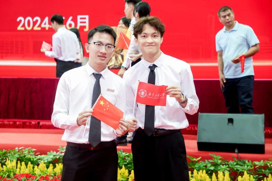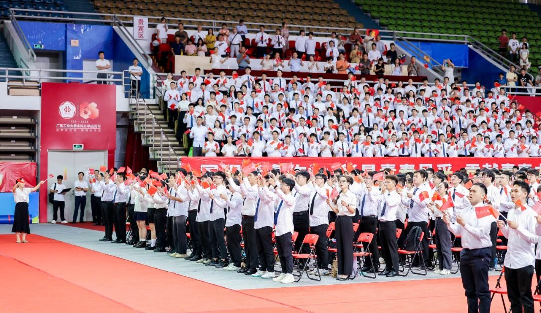 熟悉的旋律奏响,全体师生起立合唱校歌《逐梦》。学校希望同学们把握新机遇、聚焦主战场、锚定新赛道,努力成为理想信念坚定,可堪大用、能担重任的栋梁之才,以更加优异的成绩和更大的担当作为在以中国式现代化全面推进中华民族伟大复兴进程中贡献广工人的智慧与力量。