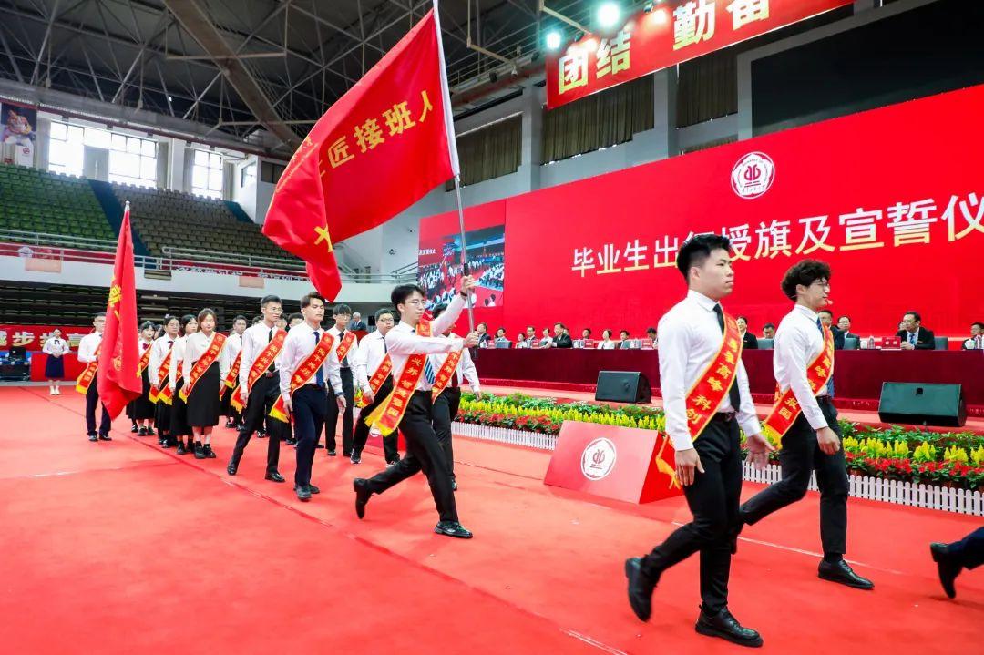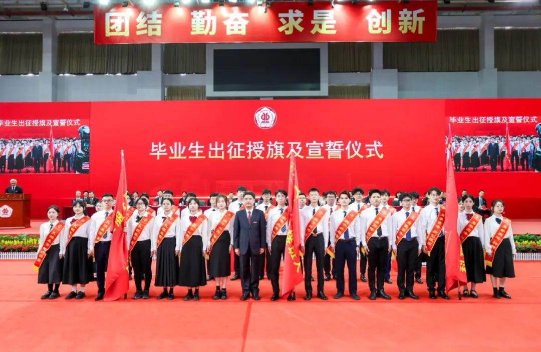 “同学们,出征!”带着母校的期望、师友的祝福,毕业生即将奔赴祖国各地开启新的奋斗征程。由投身不同就业领域的优秀毕业生代表组成的“基层就业服务团”“大国工匠接班人”“科研创新攀撑者”三个毕业生代表团登台接受胡钦太授旗。