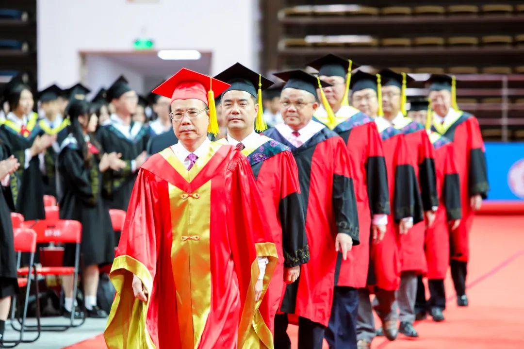 上午,毕业典礼分别在大学城校区、龙洞校区举行,东风路校区学生在龙洞校区参加,番禺校区学生在大学城校区参加毕业典礼。仪式上,胡钦太为毕业生出征授旗,勉励他们为国家发展建功立业,同学们将带着母校的期望、师友的祝福,奔赴祖国各地开启人生与事业发展的新阶段。