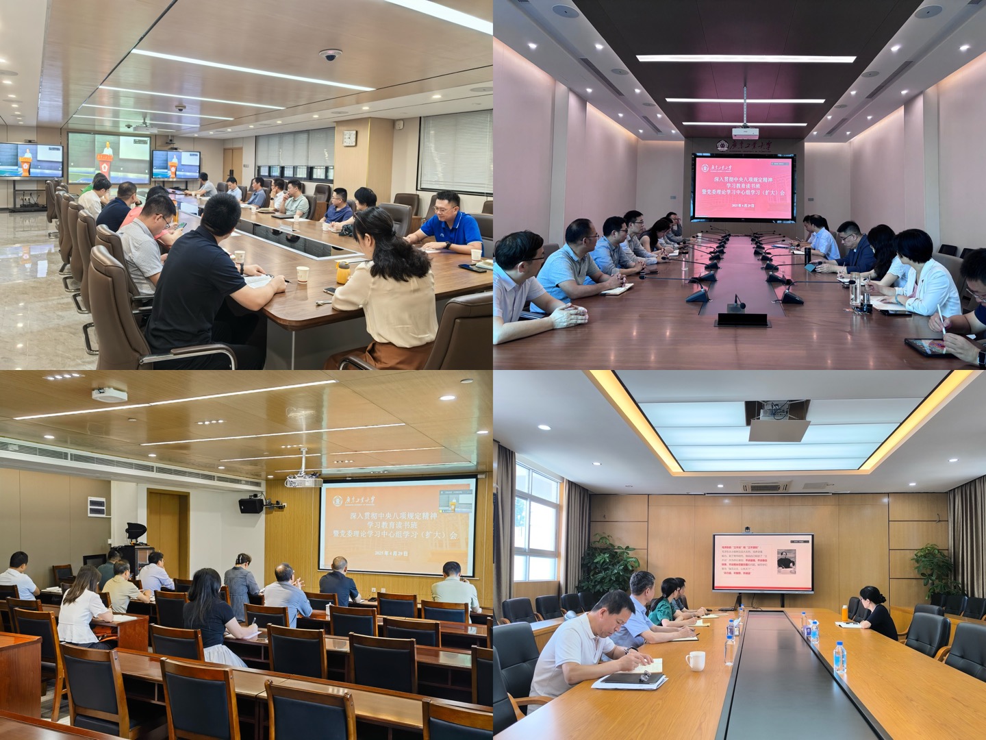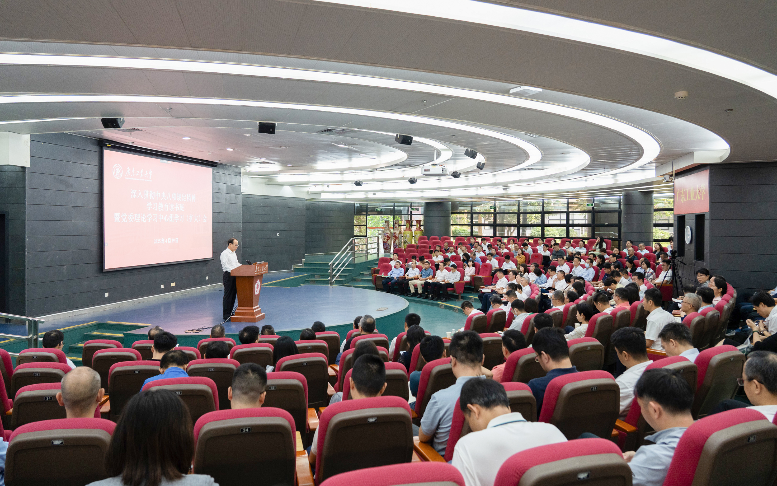 4月29日上午,安博手机网页版登录入口举办深入贯彻中央八项规定精神学习教育读书班暨党委理论学习中心组学习(扩大)会。校党委副书记、校长邱学青作动员报告,全体校领导、校党委理论学习中心组成员参加读书班。会议由校党委副书记朱蔚蔚主持。