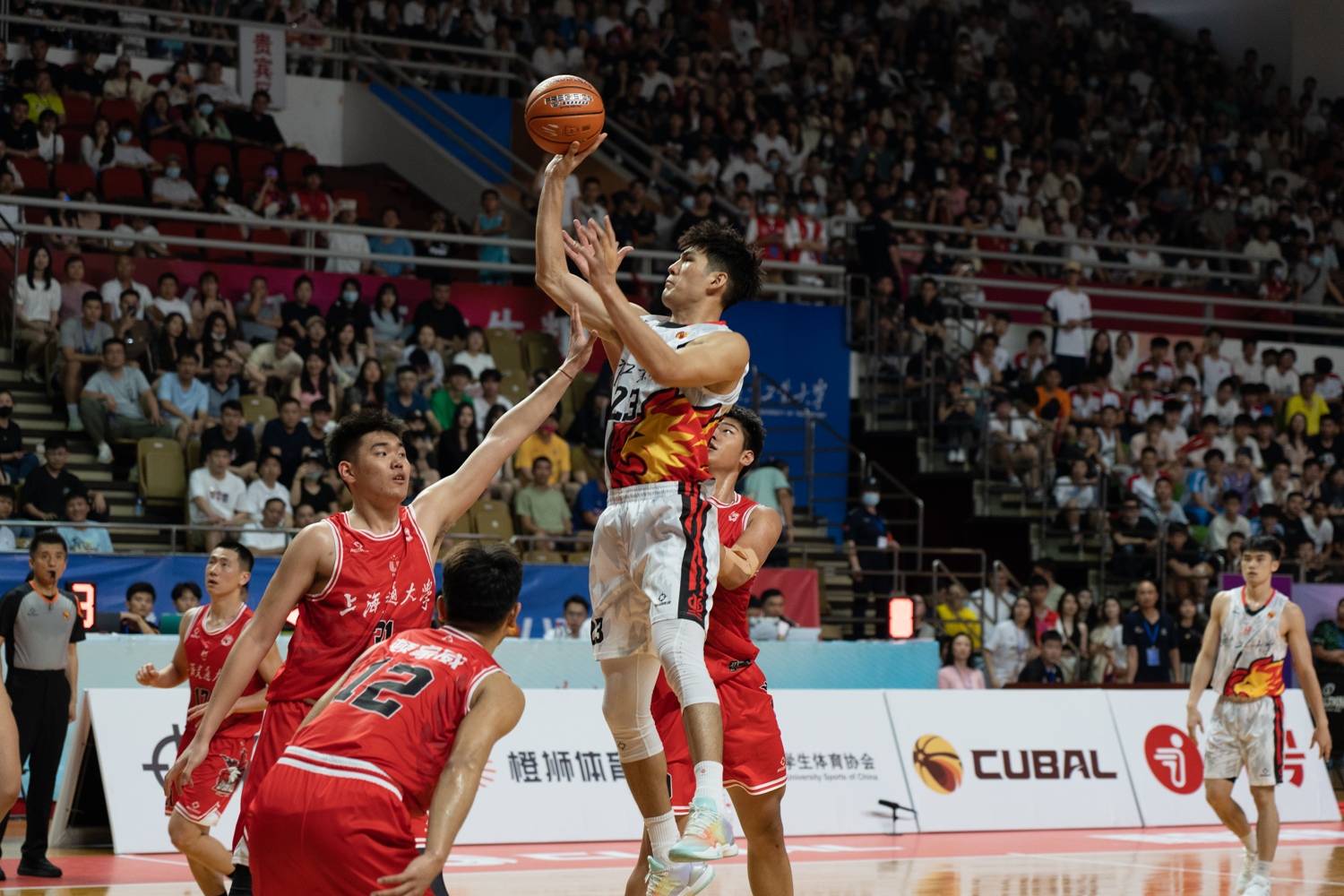 5月28日,CUBAL全国八强赛第二日比赛打响,学校坐镇主场迎战上海交通大学,以90-51的大比分取得首轮胜利。本次主场赛事受到全校师生、校友和社会的广泛关注,省教育厅体卫艺处三级调研员董业权、校长邱学青、校党委副书记陈卓武、副校长杜承铭、上海交通大学体育系主任王坤、篮球名宿李群指导和任骏飞老师来到现场,与4000多名师生共同观看了比赛,各校区还在食堂、活动中心、会议室等区域设置场外直播观赛场所。