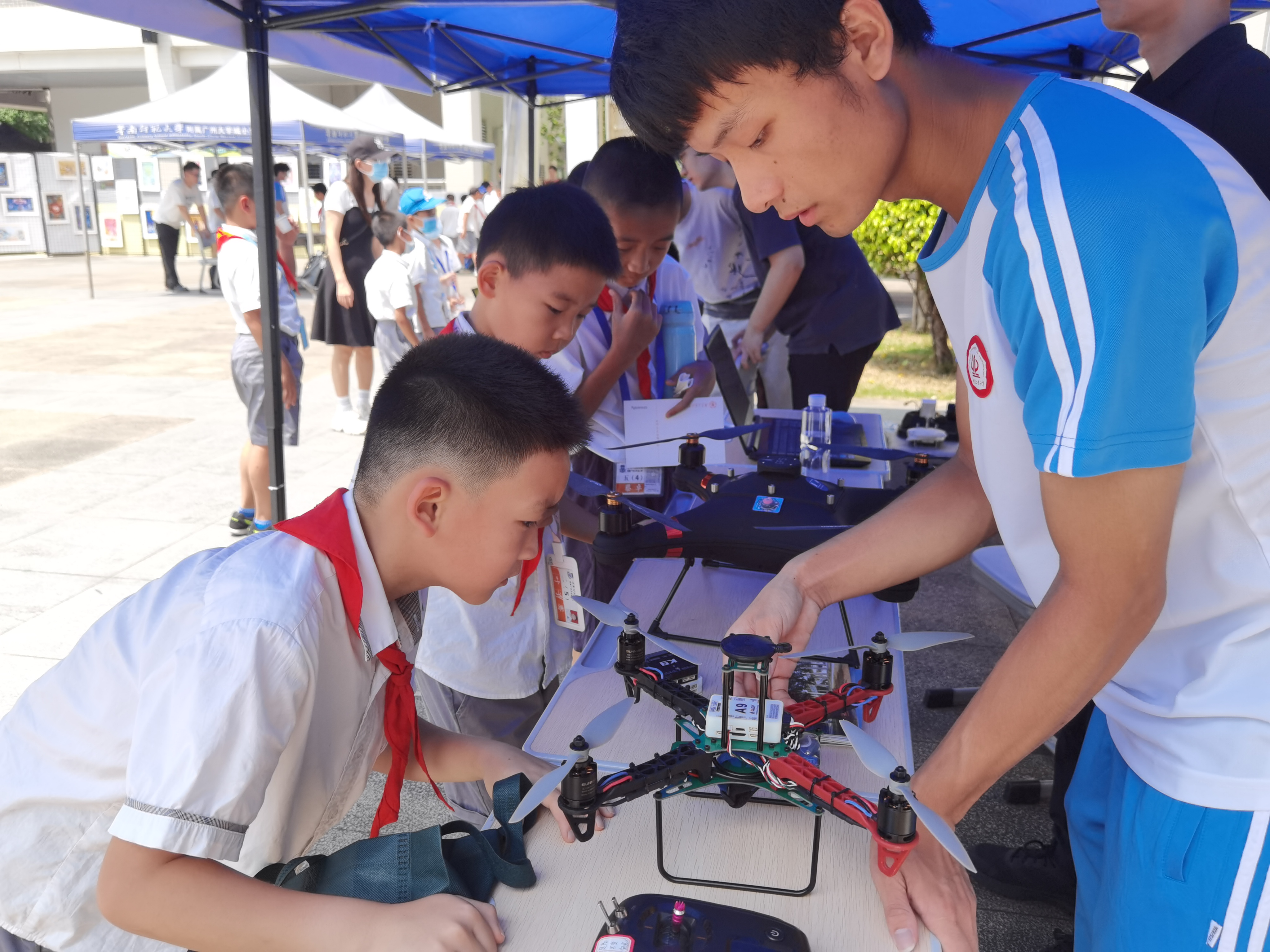 “今天的活动真是太有趣了、太精彩了,我也要跟哥哥姐姐一样自己动手做科创发明,拥有属于自己的技术作品。”小学生们情不自禁感叹道。“广工学生团队带来的科普展示非常有意思,以寓教于乐的互动式体验,在孩子们心中播下探寻科学的兴趣种子,很有意义,希望以后能有更多这样的活动。”学生家长也不禁赞叹道。