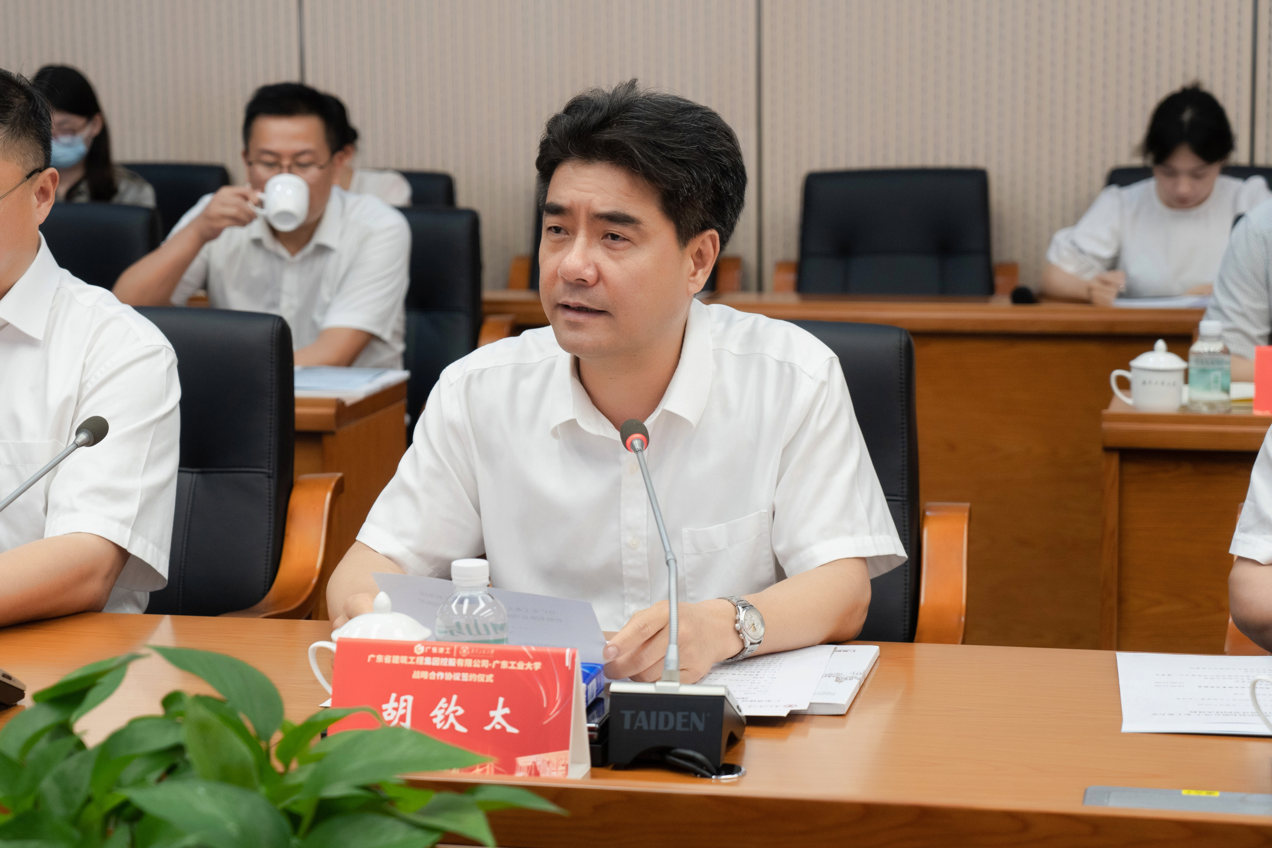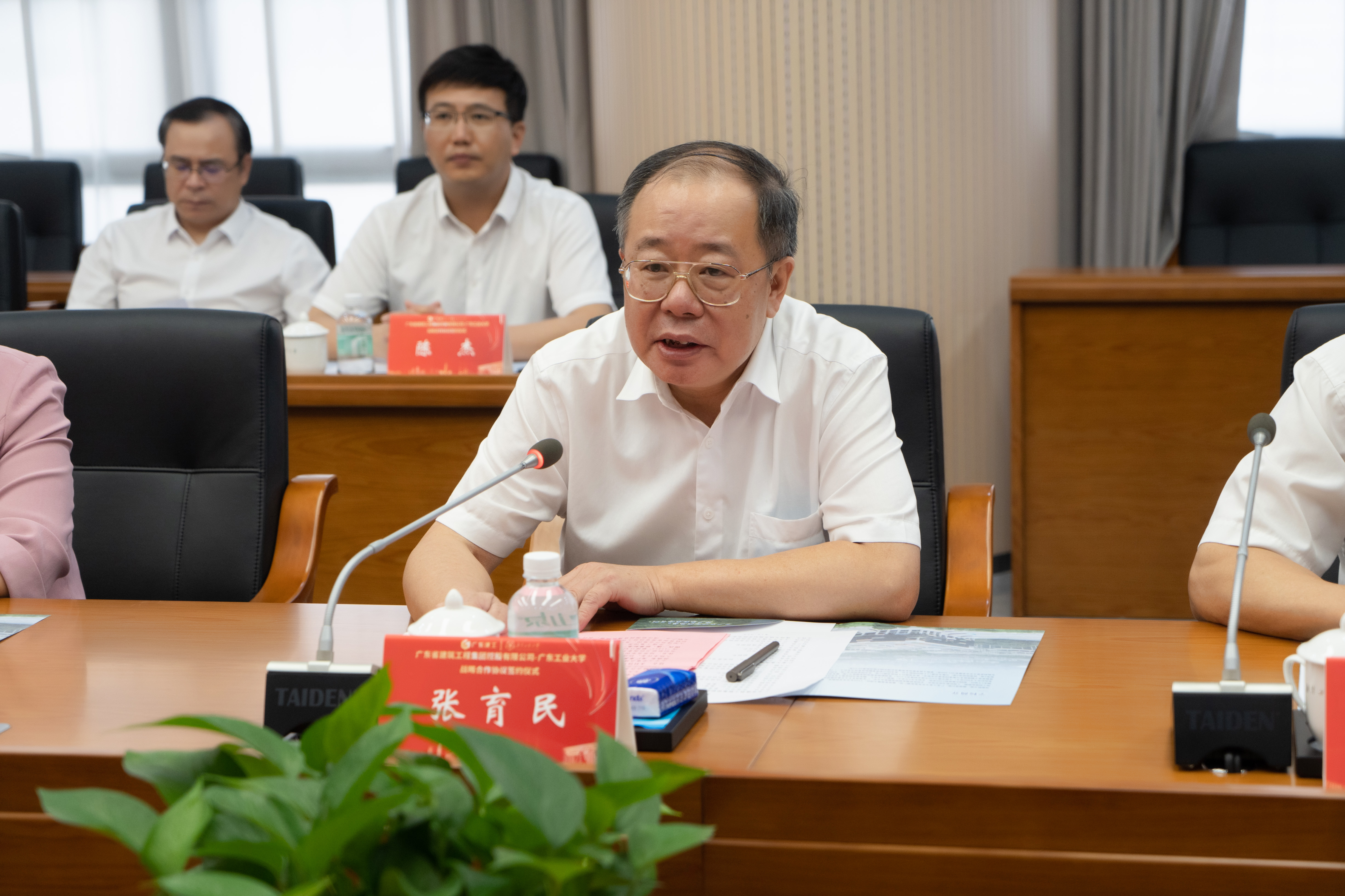 张育民介绍了广东建工集团的基本情况,他表示,作为省委、省政府重大建设项目的承担者和主力军,建工集团具有比较完整的产业链条,拥有国家级、省级科研创新平台。他希望双方能够深入开展校企合作,深化产教融合,为广工学子提供更多高质量的就业和实践机会,整合各自优势资源,面向区域经济社会发展需要,推动联合攻关 实现合作共赢,共同谱写校企合作新篇章,为广东省在全面建设社会主义现代化国家新征程中走在全国前列作出更大贡献。