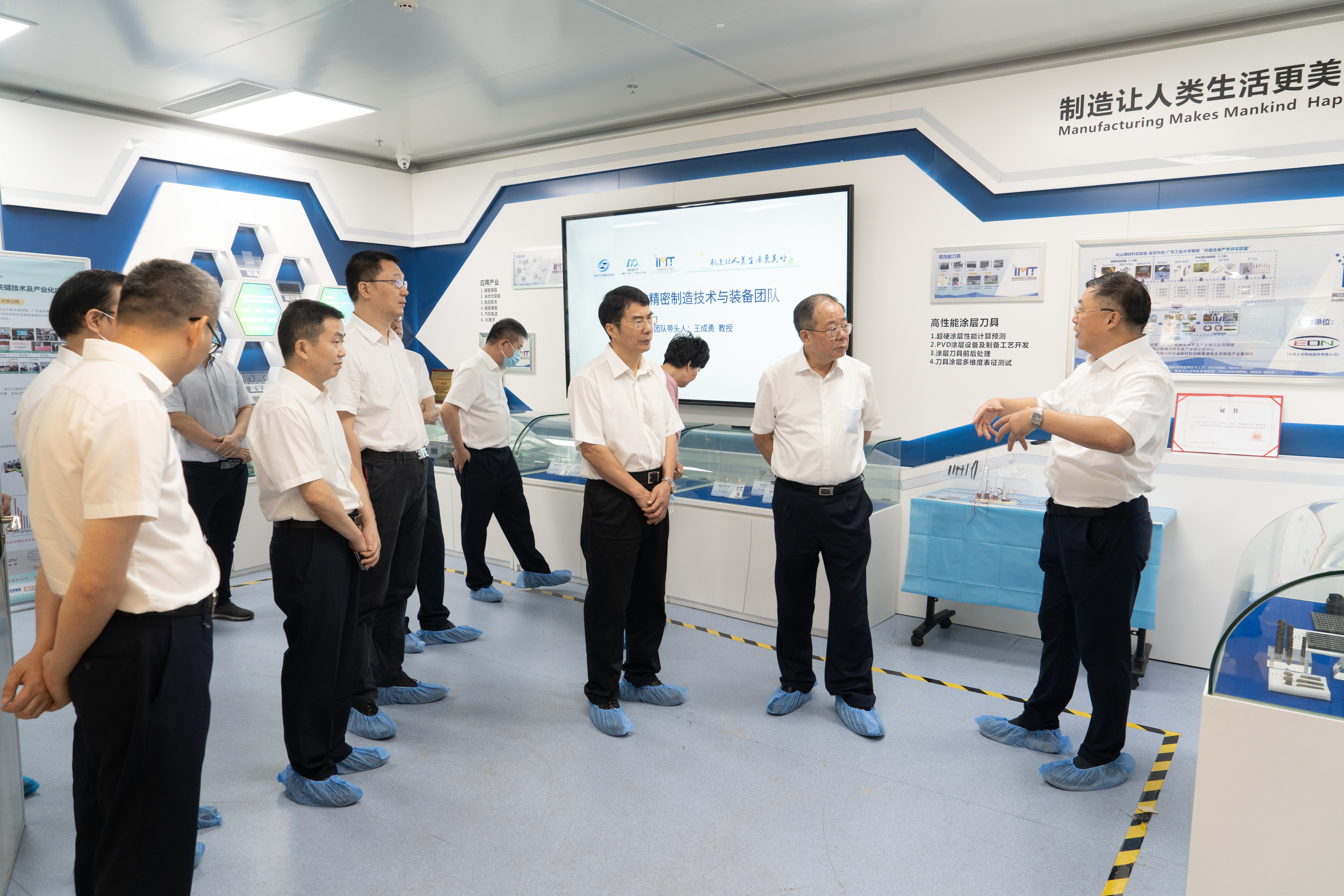 仪式前,张育民一行在王成勇的陪同下参观了高性能工具全国重点实验室。