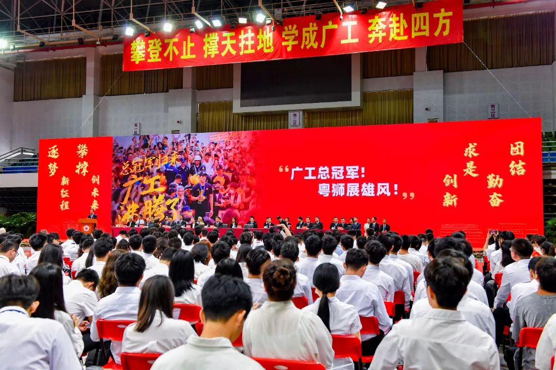 仪式为2023届毕业生校友联络员颁发聘书,表彰2023届优秀毕业生。熟悉的旋律奏响,全体师生起立合唱校歌《逐梦》。学校希望同学们坚定理想信念,勇担时代使命,努力成为可堪大用、能担重任的栋梁之才,为全面建设社会主义现代化强国,全面推进中华民族伟大复兴,贡献广工人的智慧与力量。