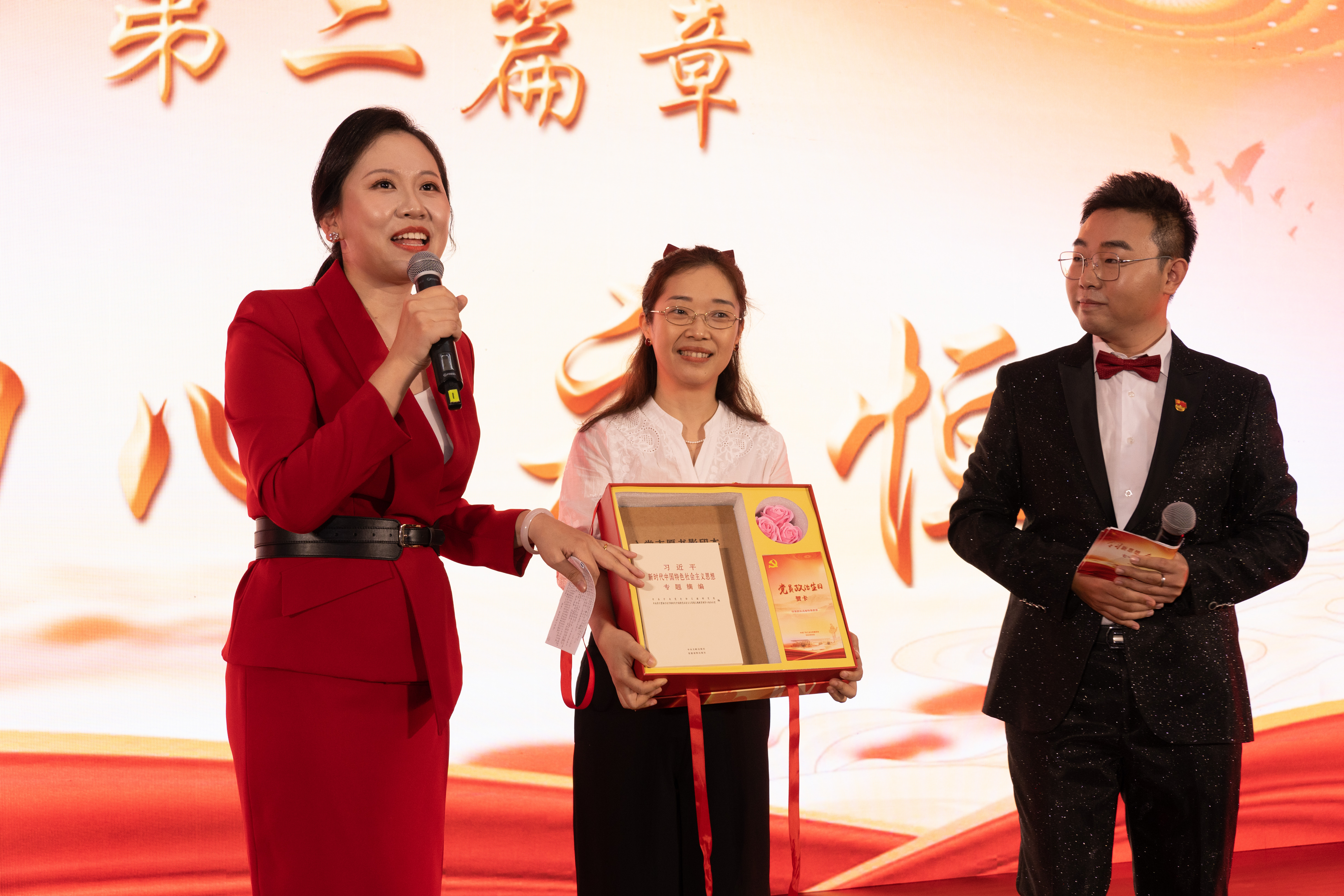 礼盒由精美的“政治生日”贺卡、《入党志愿书影印本》以及《习近平新时代中国特色社会主义思想专题摘编》《红星照耀中国》两本书组成,表达了学校党委对党员“政治生日”的祝福,寄托了对党员牢记初心使命、赓续红色血脉、永葆政治本色、谱写时代新篇的殷切期望。