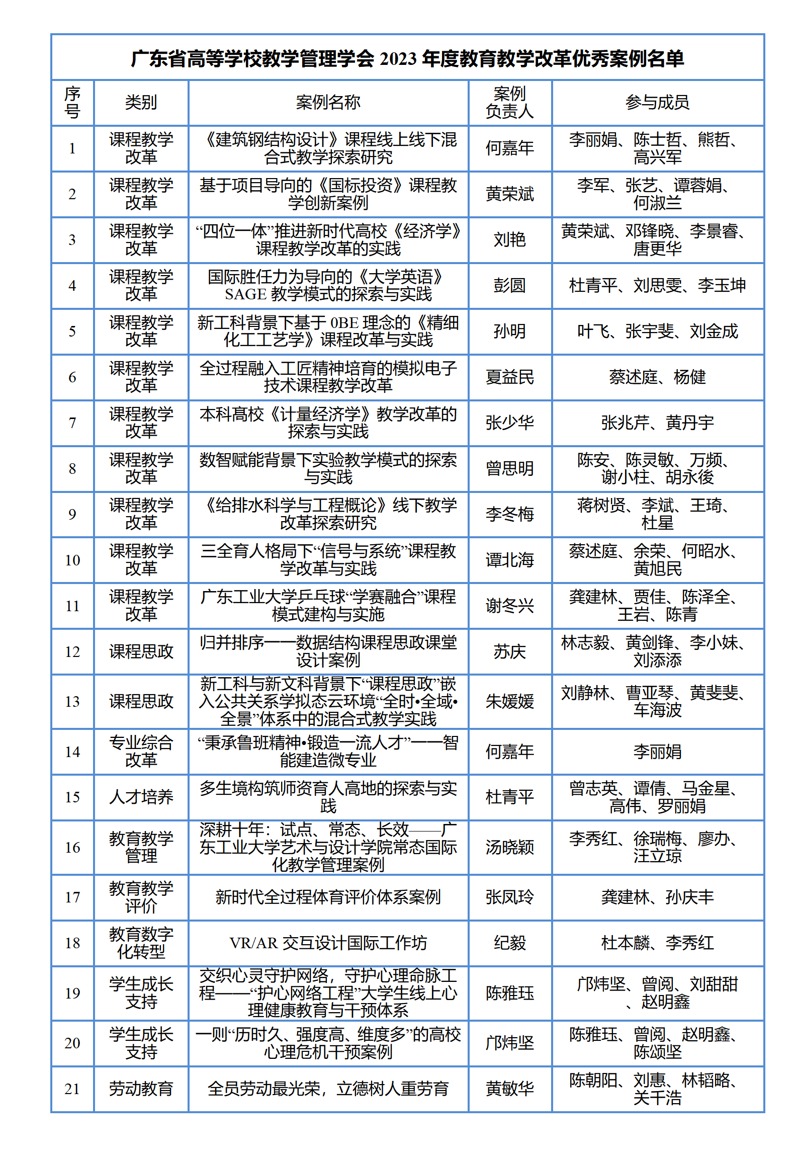 近日,广东省高等学校教学管理学会对2023年度教育教学优秀案例及优秀组织单位名单进行了公示。在本次教育教学优秀案例评审中,学校21个参赛案例脱颖而出,获得佳绩,同时学校获评“广东省高等学校教学管理学会2023年度教育教学改革优秀案例优秀组织单位”。