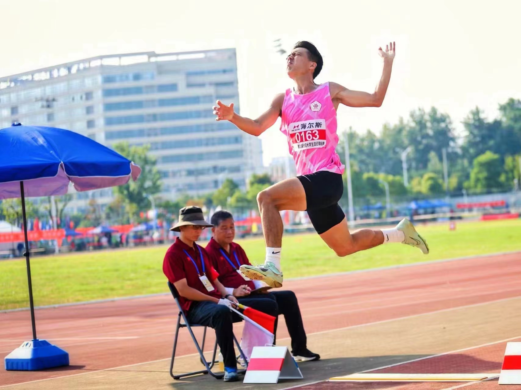 8月11日,在跳远项目中,张泽辉同学跳出7.32米的成绩,以绝对优势夺得男子甲组跳远冠军,并达标国家一级运动员;曾芷婷同学在女子甲组跳远中以5.37米的成绩摘银并达标国家二级运动员。