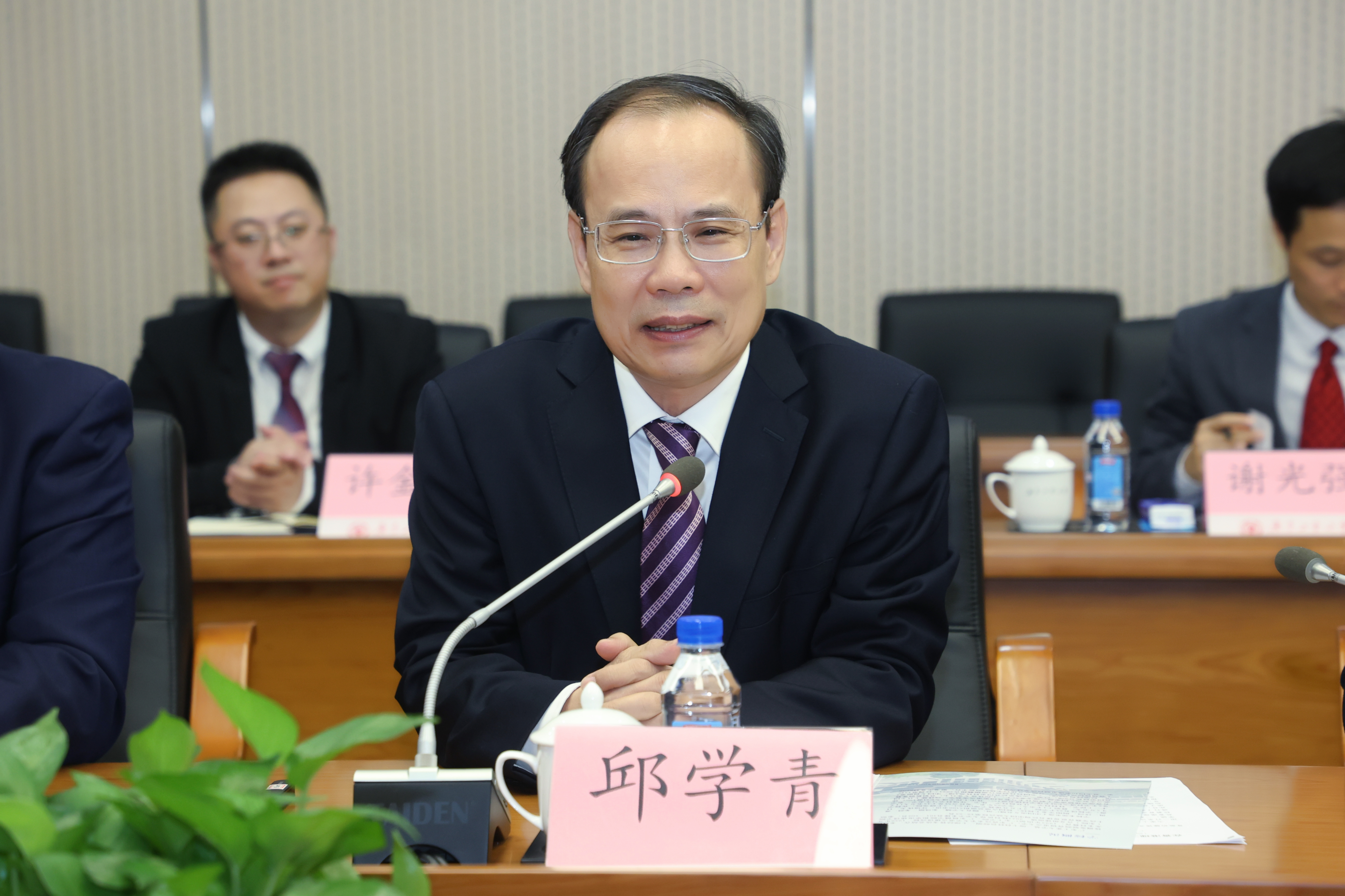 9月11日上午,香港理工大学校长滕锦光院士、教学副校长黄国贤、内地发展总监陆海天一行来访学校。学校校长邱学青在大学城校区会见来宾,副校长杜承铭主持座谈交流,副校长王成勇、副校级干部张学理陪同参观并出席座谈会。