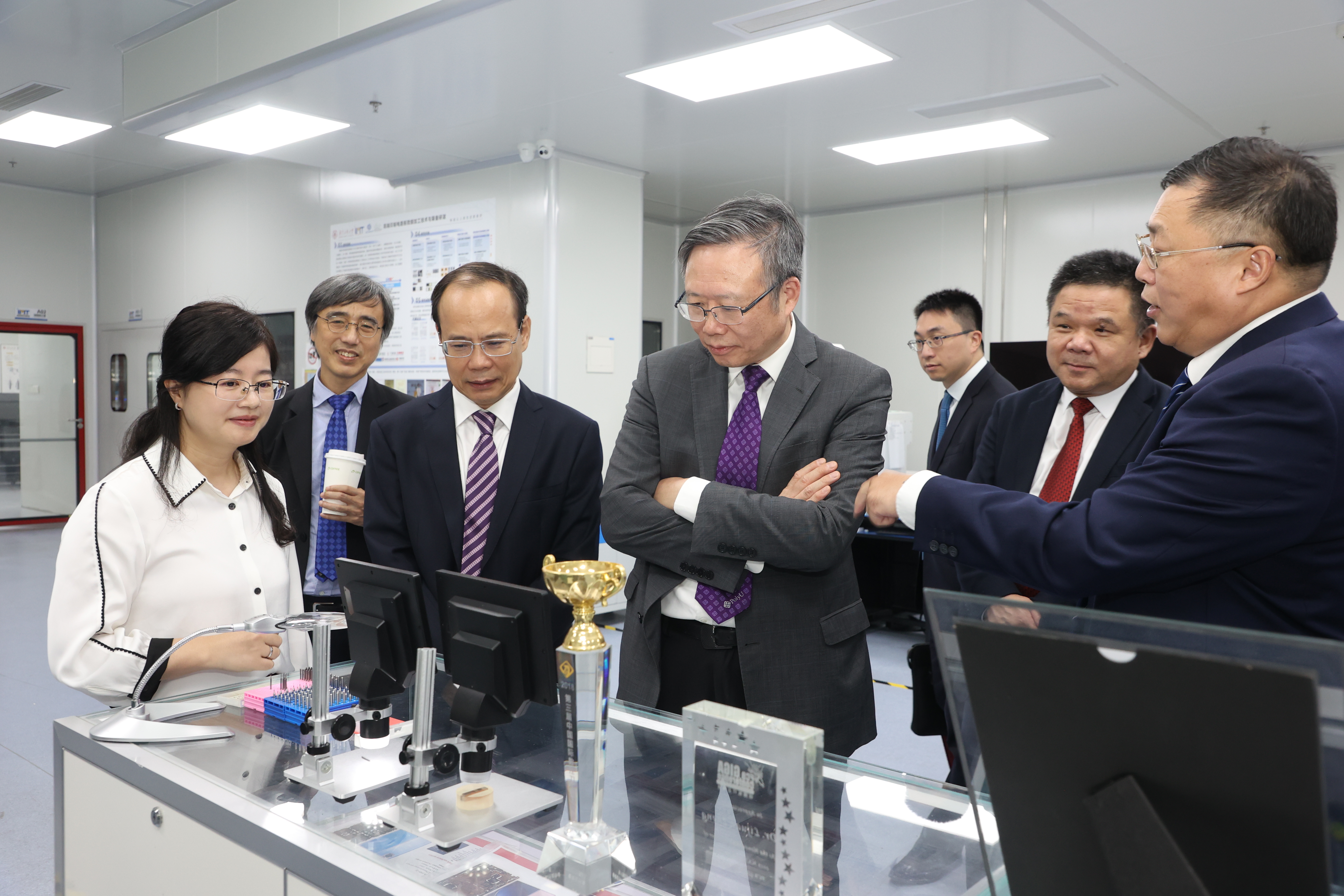 会见座谈之前,滕锦光一行在邱学青、杜承铭、王成勇、张学理等陪同下分别参观了创新创业学院、高性能工具全国重点实验室(安博手机网页版登录入口)。王成勇对高性能工具全国重点实验室(安博手机网页版登录入口)的相关建设及学术进展作了讲解。张学理介绍了创新创业教育的育人成果及粤港澳合作情况。滕锦光还与相关师生进行亲切交谈,了解学校创新创业教育情况及前沿技术成果。