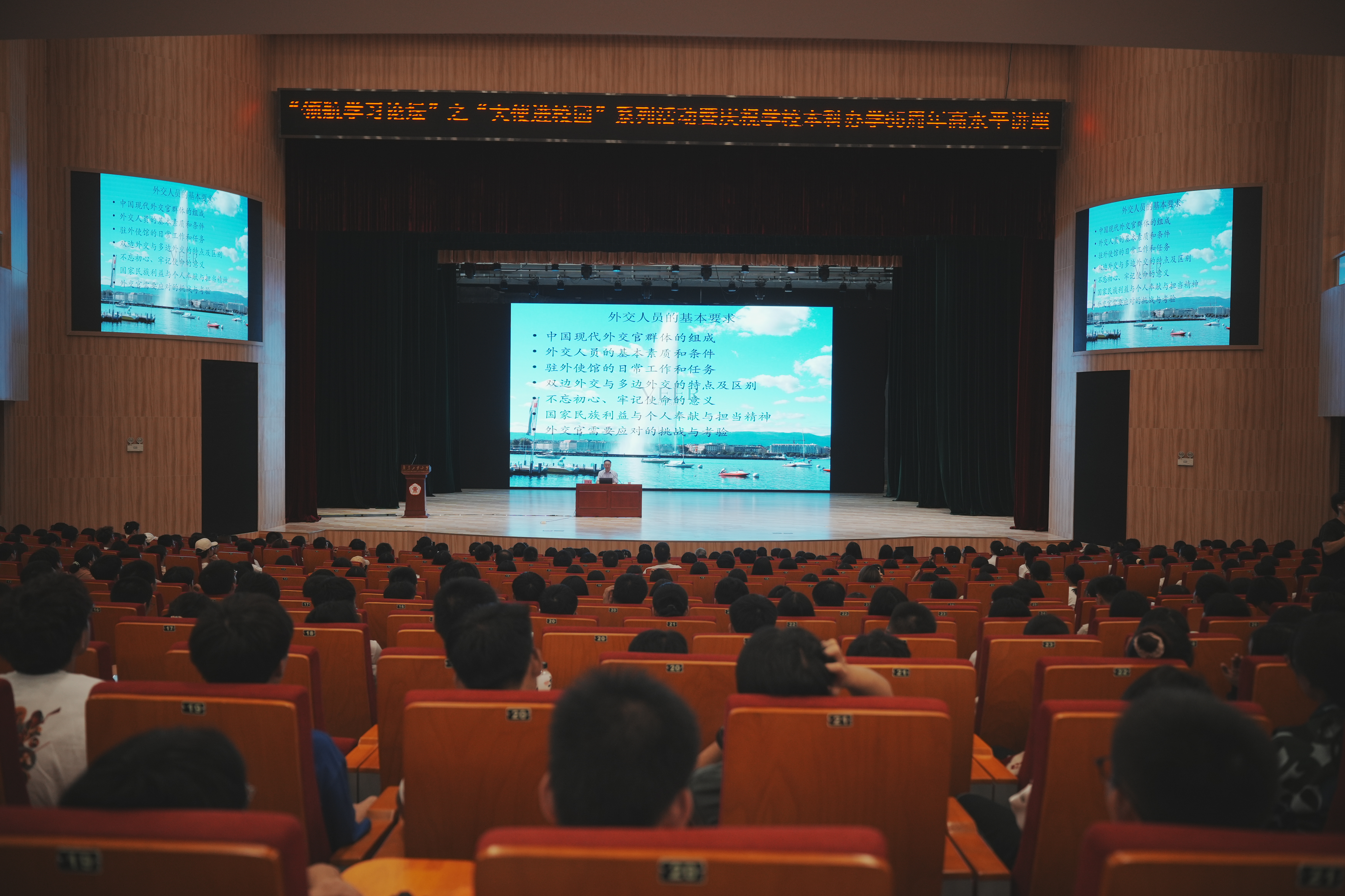 随后,刁鸣生以“国际交往中的中国智慧”为题,为学校500余名新生带来了一场别开生面的讲座。作为资深的外交官,刁鸣生有丰富的外交实践经验,他从自身丰富的外交经历出发,为大家讲述了多年奋斗在对外工作一线的外交故事。刁鸣生从中国现代外交官群体的组成着手,用四个惊心动魄的经典案例,深入浅出地介绍了驻外外交官的日常工作任务,具体阐释了双边外交与多边外交的特点及区别、当代外交官需要应对的挑战与考验,应该具备的政治素养及危机处理能力,阐释了外交官的使命与担当。刁鸣生寄语新生:新时代新青年要学深悟透习近平外交思想,不断提高政治站位,增强“四个意识”、坚定“四个自信”、做到“两个维护”,要深刻领悟“两个确立”的决定性意义;要掌握好语言这一项技能,用语言打开世界的大门,从而更好的了解全球文化;要珍惜青春年华,掌握真正的知识本领,将个人发展和祖国建设紧密联系起来,为维护世界和平、促进人类进步事业做出贡献。