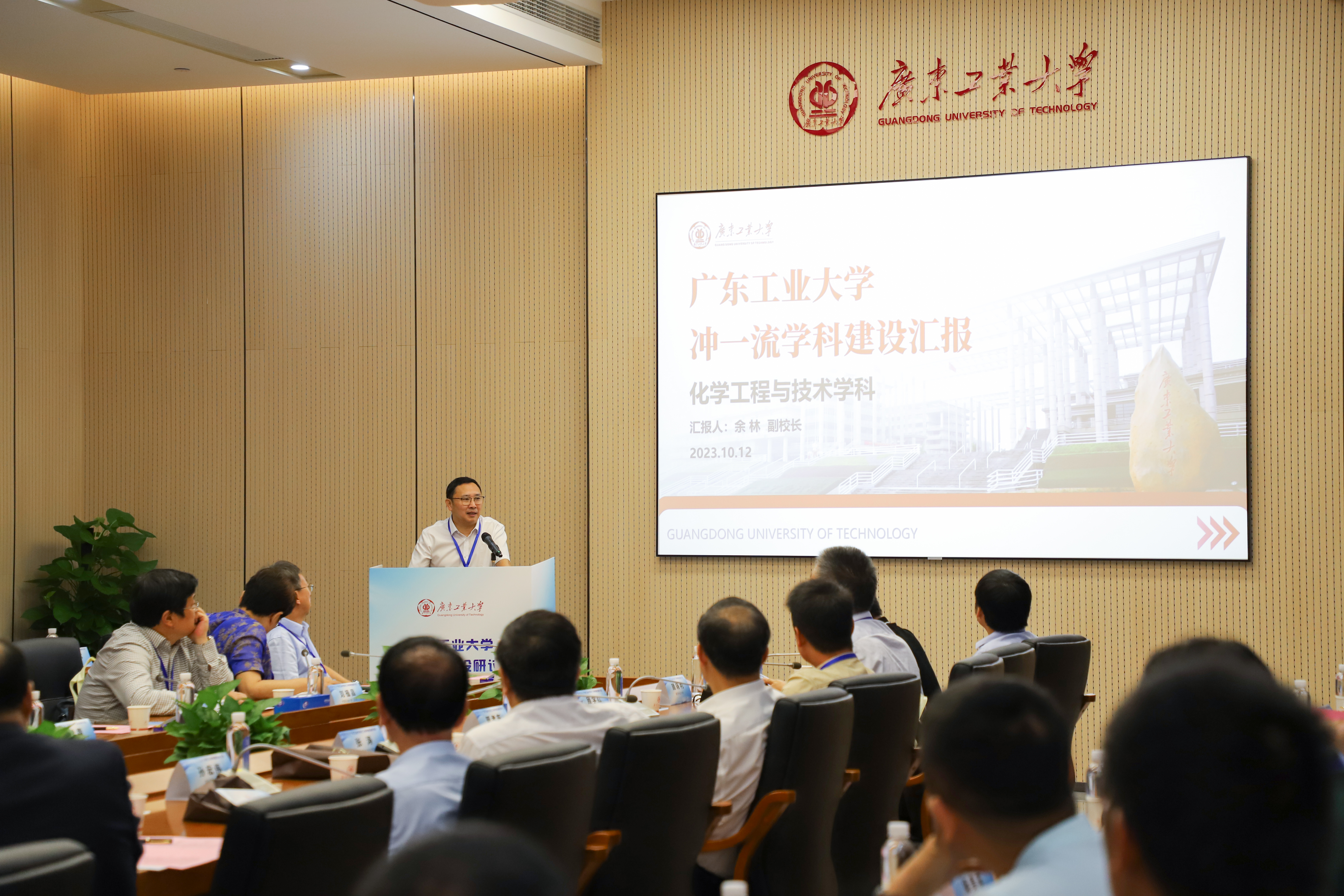 余林代表学校化工学科进行“冲一流”学科建设汇报。他从学科基础、学科发展建设总体布局、已有建设成效和下一步发展思路等四个方面进行详细介绍。他指出,学校化工学科紧扣广东省“石化和生物质”两大资源优势,聚焦石化源头绿色替代、石化过程清洁生产以及中下游产品高值化利用等关键技术,逐渐形成了精细化工、高分子材料、新能源化工三个优势特色方向,未来希望通过加强领军人才引育、学科交叉创新、产教协同、科教融合、国际合作等工作,高质量推进化工学科建设。