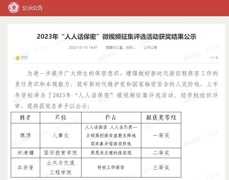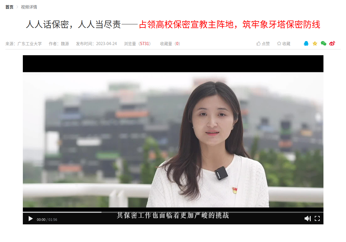 近日,中央保密委员会办公室、国家保密局联合发文,对在2023年“保密宣传教育高校行”活动中表现突出的全国108所高校进行通报表扬,广东省仅6所高校获此殊荣,学校光荣上榜。