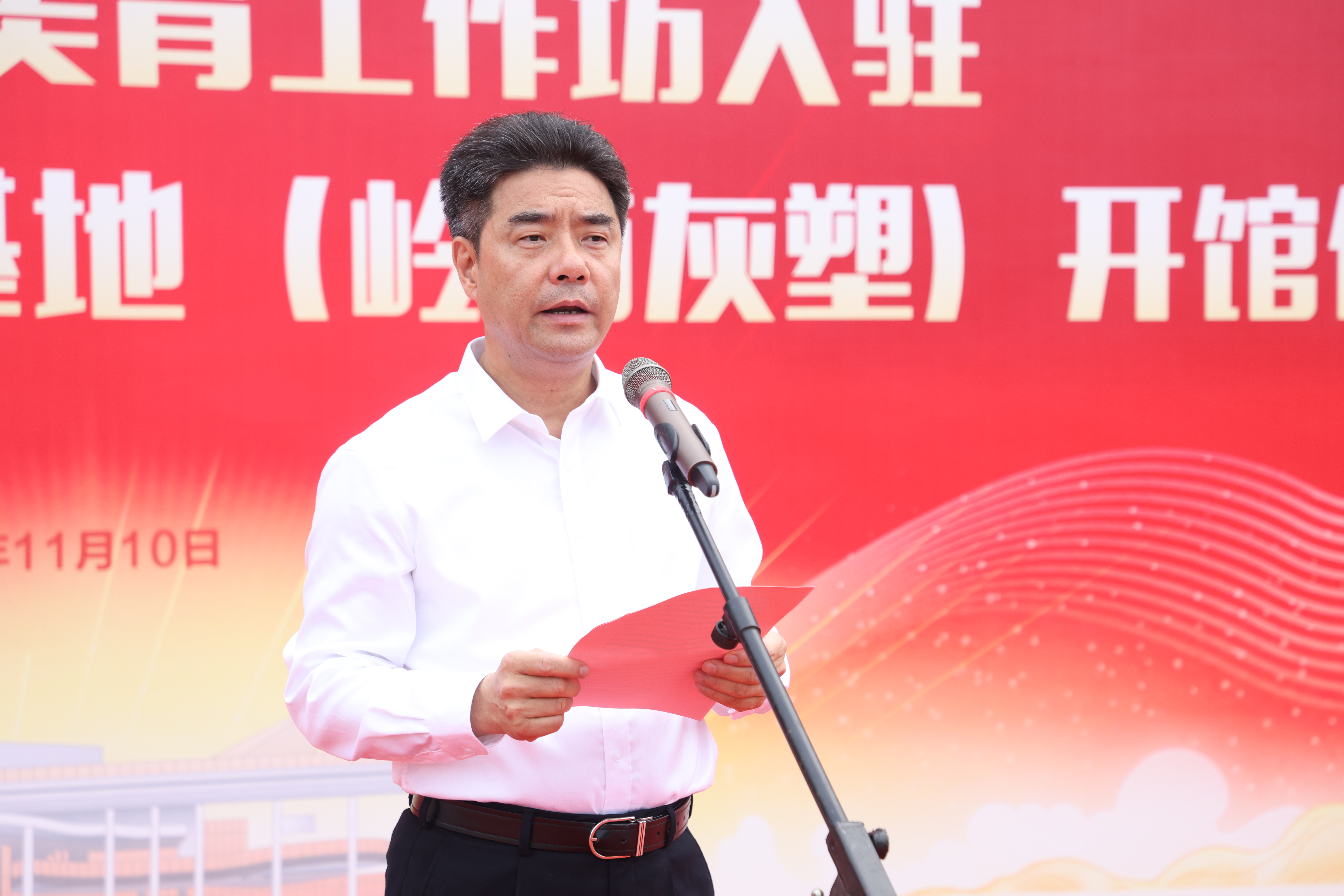 胡钦太在致辞中代表学校党委向学校美育工作坊入驻文化活动中心,向以岭南文化传承普及基地为代表的学校美育教学团队取得的丰硕成果表示热烈祝贺。他指出,学校一直以来高度重视学生的美育教育,通识教育中心致力于充分发挥美育课程体系与美育工作坊的育人功能,取得系列佳绩。他希望师生以美育工作坊正式入驻崭新的文化活动中心、岭南灰塑馆开馆为契机,充分发挥美育功能,在沉浸式体验中激发出学生的思想共感、情感共鸣,真正践行“思政美育+”的工科大学通识教育协同育人新格局,为学校高水平创新型大学建设、高素质创新型人才培养贡献更大力量。