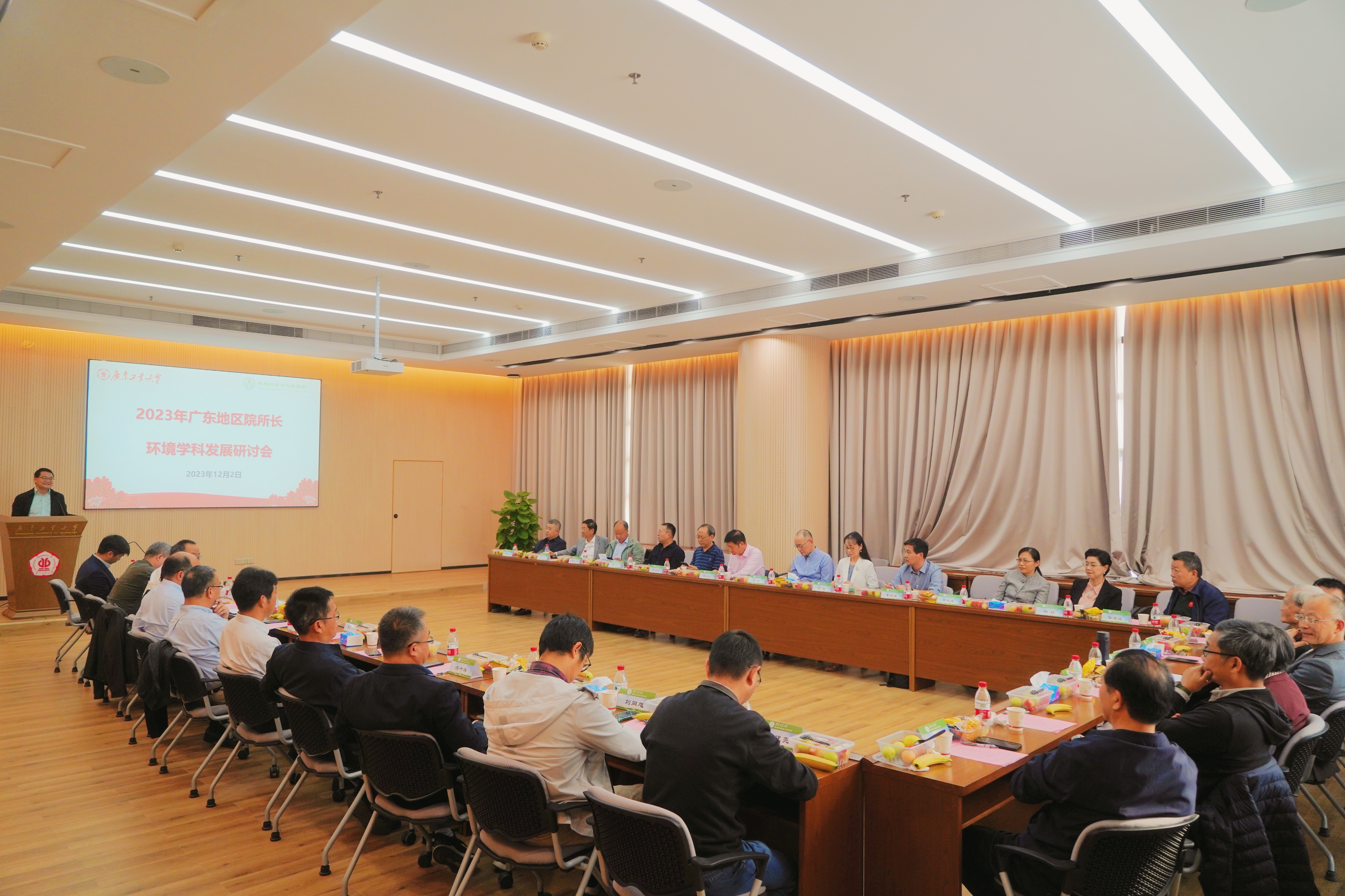 近日,广东地区院所长环境学科发展研讨会在安博手机网页版登录入口环境科学与工程学院召开。来自中山大学、华南理工大学、北京师范大学(珠海)、暨南大学、华南师范大学、南方科技大学、广州大学、仲恺农业工程学院、佛山科学技术学院等广州及周边高等院校环境学科带头人、所在学院院长,以及中国科学院广州地球化学研究所、生态环境部华南环境科学研究所、广东省科学院生态环境与土壤研究所等科研院所相关学科负责人参会。广工发展规划处、环境科学与工程学院相关负责人以及相关学科带头人和教师代表参加了交流会。