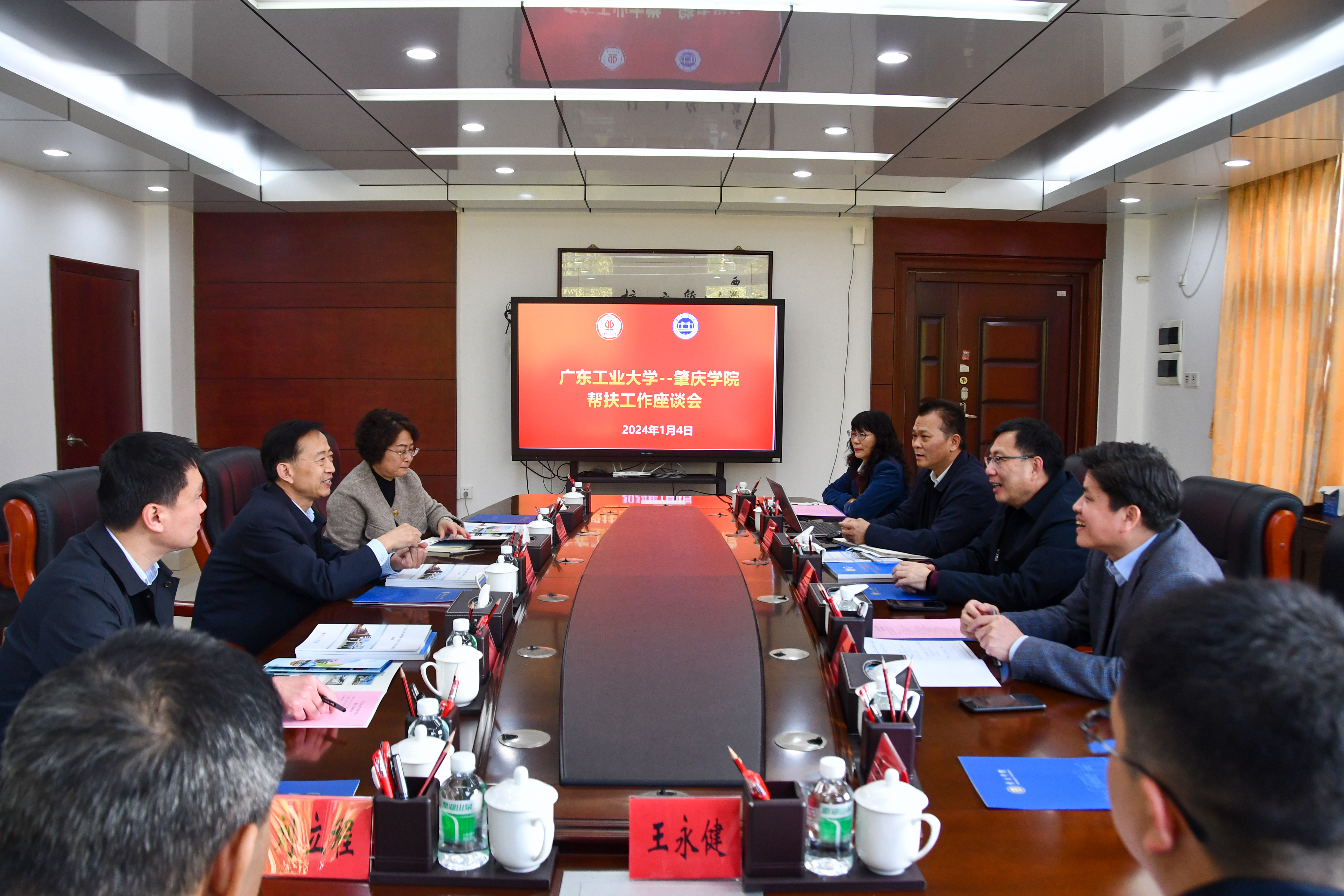 1月4日下午,学校党委副书记陈良友,党委常委,组织部、统战部部长李靖茂一行,赴肇庆学院看望慰问帮扶工作队。肇庆学院党委书记谢冠华,校党委副书记、组织部部长欧洪湛出席,帮扶工作队全体成员参加。双方就进一步加强交流共建,促进“组团式”帮扶优化提升进行座谈交流。