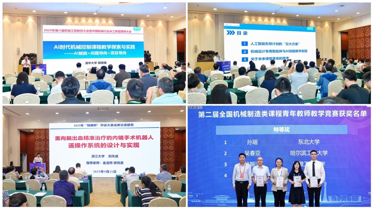 大会围绕工程教育专业认证的理念与实践、毕设大赛与机教创新赛优秀成果交流、机械制造类课程教学创新实践、AI赋能机械工程教育教学、国家卓越工程师学院建设与实践、双千计划微专业人才培养实践与创新探索等方面设置六个分论坛进行广泛的交流与研讨。在主旨报告环节,郑泉水院士作了题为“数智时代创新型人才培养——从清华到深圳的实践和思考”的报告;奚立峰教授作了题为“上海交通大学机械类专业产教融合育人模式改革与实践”的报告;洪军教授作了题为“AI赋能自主自助式学习的课程革命”的报告;刘强教授作了“装备类人才培养模式探索”的报告;陈虎博士作了“五轴数控机床高质量发展创新实践”的报告。
