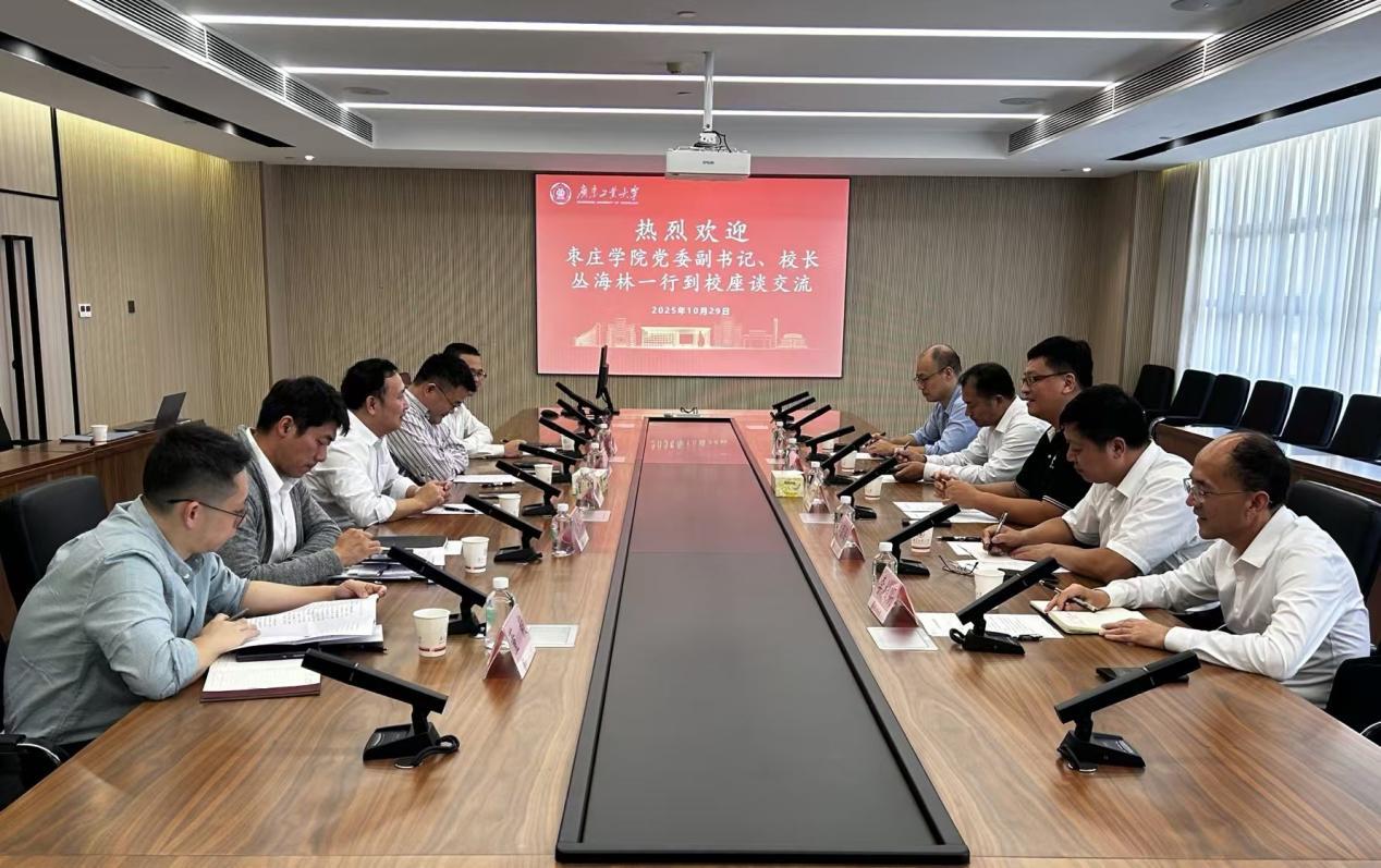 10月29日下午,枣庄学院党委副书记、校长丛海林一行来校开展调研交流。学校副校长余林会见来宾,发展规划处、教务处、科学研究管理部、人事处等单位相关负责人参加座谈交流。