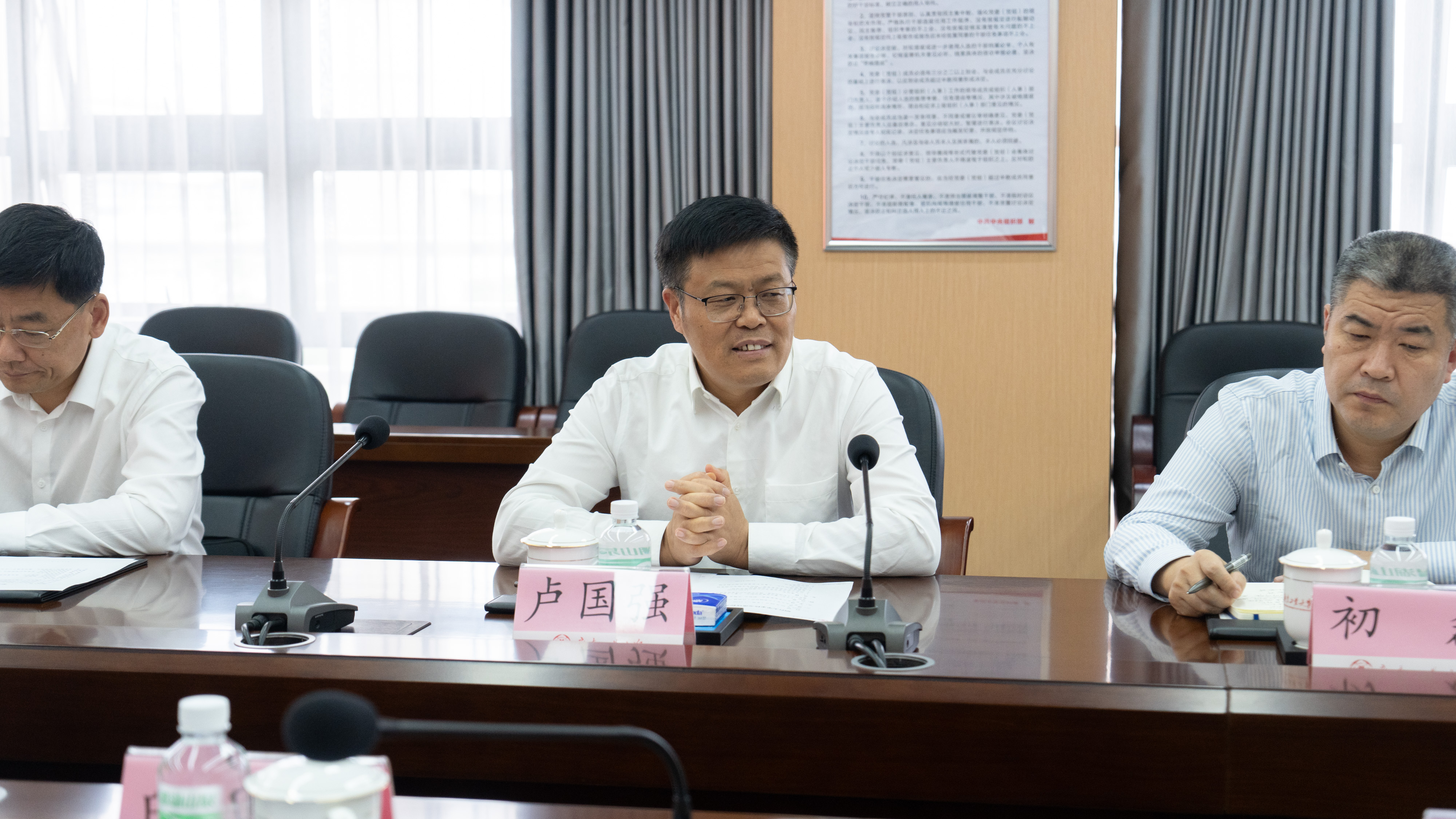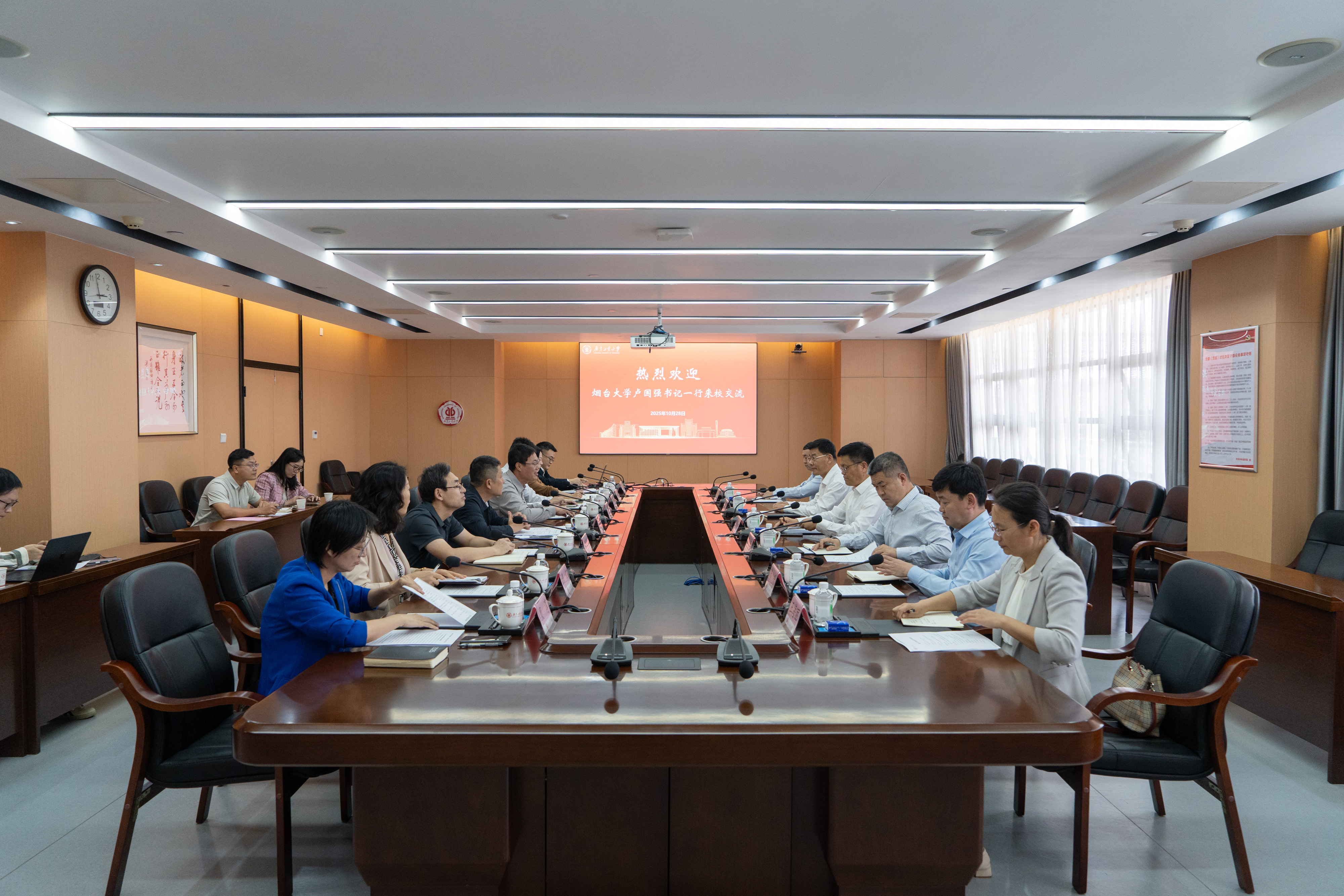 10月28日下午,烟台大学党委书记卢国强一行来校调研交流。学校党委书记白建刚在大学城校区行政楼702会议室会见客人,双方围绕“十五五”事业发展规划制定、人事人才制度改革和高层次人才引进及培育、健全全面从严治党体系建设等方面开展座谈交流。党委常委、副校长王振友,党委常委、纪委书记、广东省监委驻安博手机网页版登录入口监察专员庞建国,党委常委、宣传部部长张育广出席座谈会,党委办公室、校长办公室、纪委办公室、党委组织部、发展规划处、党委教师工作部等部门相关负责人参加会议。