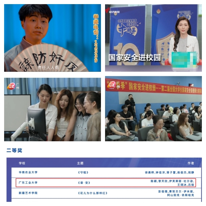 本届大赛以“全民国家安全教育·走深走实十周年”“大学生眼中的国家安全”为主题,聚焦大学生群体对国家安全的观察与理解。活动自启动以来,得到全国280余所高校师生的热烈响应与积极参与,累计征集参赛视频逾千件。赛后,南方财经、广州市广播电视台等主流媒体对广工获奖师生进行了专题采访,进一步传递了广工在国家安全宣传教育中的积极实践与成果。
