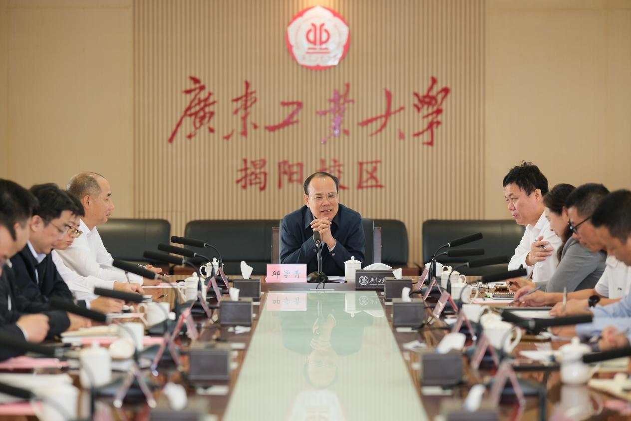 在榕江实验室建设发展座谈会上,邱学青听取榕江实验室负责人的工作汇报,对推动榕江实验室高水平建设提出系统性要求。一要明确定位,以多方共赢引领长远发展,立足省级科研平台初心使命,推动科技、人才集聚,服务校区学科建设、服务地方经济社会发展,将实验室打造成为粤东西北地区建设省实验室的典范。二要创新机制,强化顶层设计与内部协同,依托广工优势学科资源,优化管理架构与工作流程,形成权责清晰、运行有序的内部治理体系,为实验室可持续发展提供制度保障。三要聚焦实效,以精准服务增强支撑能力,围绕企业孵化、人才培训、设备共享、科普宣传等社会服务职能,打造与地方发展需求紧密对接的窗口平台,切实支撑地方“百千万工程”实施与高质量发展。