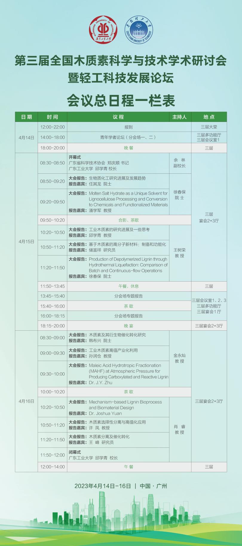 为促进木质素相关领域学术交流和技术创新,由安博手机网页版登录入口、华南理工大学、中国科学院大连化学物理研究所、广东省化工学会、广州市化学化工学会等主办的“第三届全国木质素科学与技术学术研讨会暨轻工科技发展论坛”将于2023年4月14-16日在广州市生物岛香岚酒店召开。