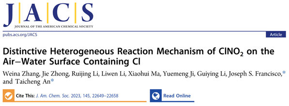 近日,我校环境科学与工程学院、环境健康与污染控制研究院安太成教授团队与美国宾夕法尼亚大学Joseph S. Francisco教授团队合作,在硝酰氯(ClNO2)的气-液界面形成及其产生氯自由基机理的理论化学计算方面取得重要进展。研究成果以《Distinctive heterogeneous reaction mechanism of ClNO2 on the air‒water surface containing Cl》为题,于2023年10月9日发表在Journal of the American Chemical Society, 2023, 145: 22649-22658期刊上。论文的第一作者为张维娜副教授,通讯作者为安太成教授和Joseph S. Francisco教授,安博手机网页版登录入口为论文的第一单位。