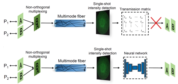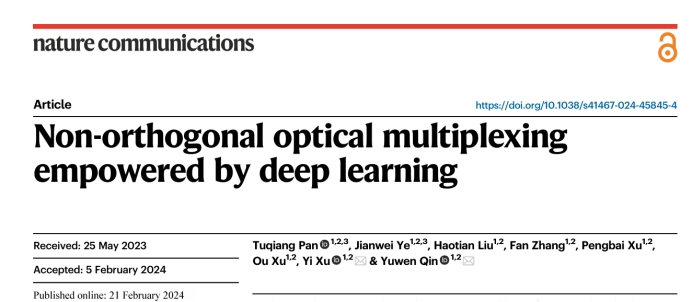 近日,我校信息工程学院秦玉文教授领导的研究团队在多模光纤的非正交光信息复用传输方面取得重要进展,研究成果(即论文标题)“Non-orthogonal optical multiplexing empowered by deep learning”于2024年2月21日发表在国际顶级综合性学术期刊《Nature Communications》(影响因子:16.6),这是信息工程学院首次以第一单位在Nature子刊发表研究论文。信息工程学院2021级硕士生潘土强和叶建伟为共同第一作者,论文通讯作者为徐毅教授和秦玉文教授,研究工作依托通感融合光子技术教育部重点实验室和广东省信息光子技术重点实验室,安博手机网页版登录入口为论文唯一完成单位。