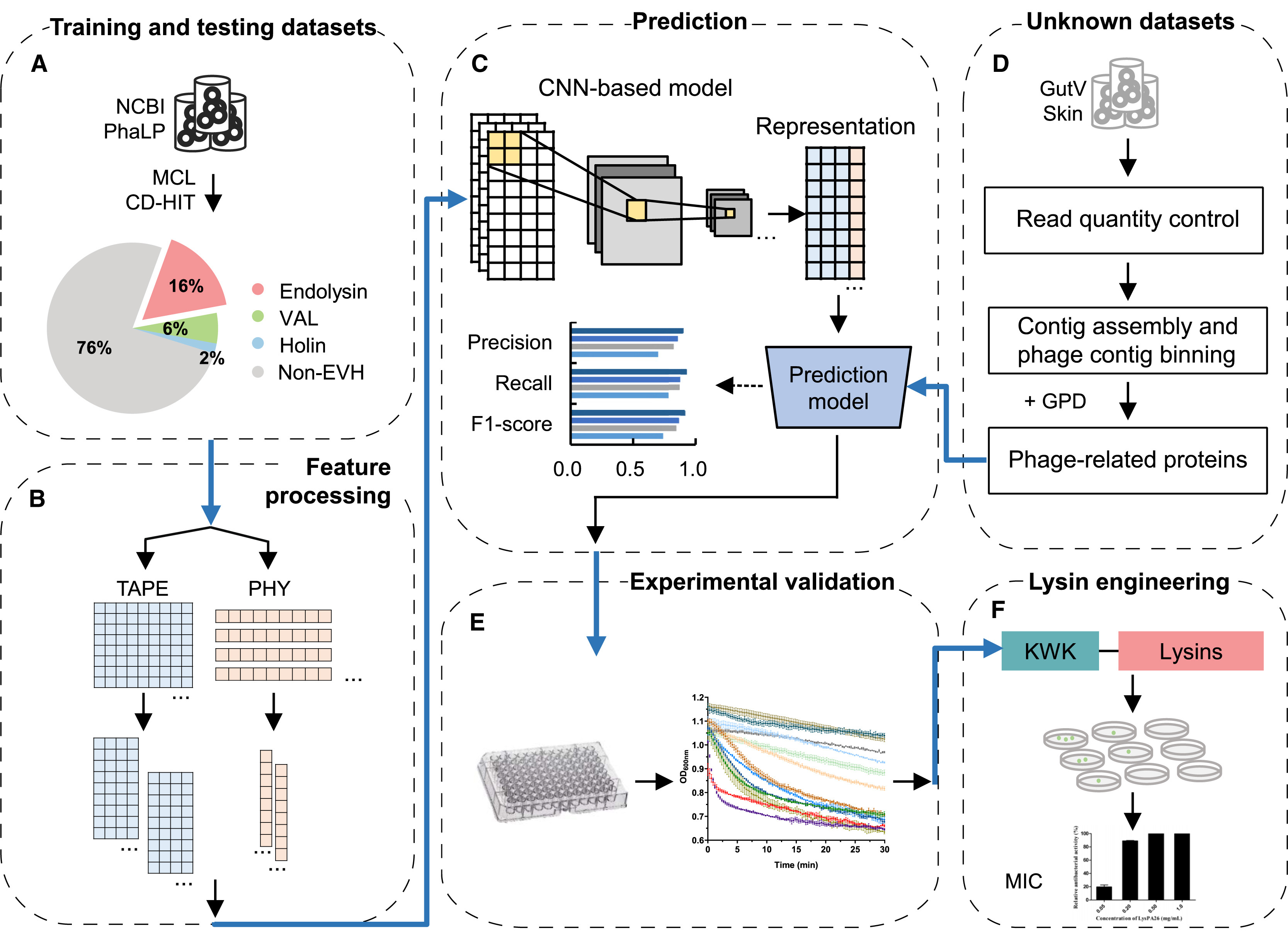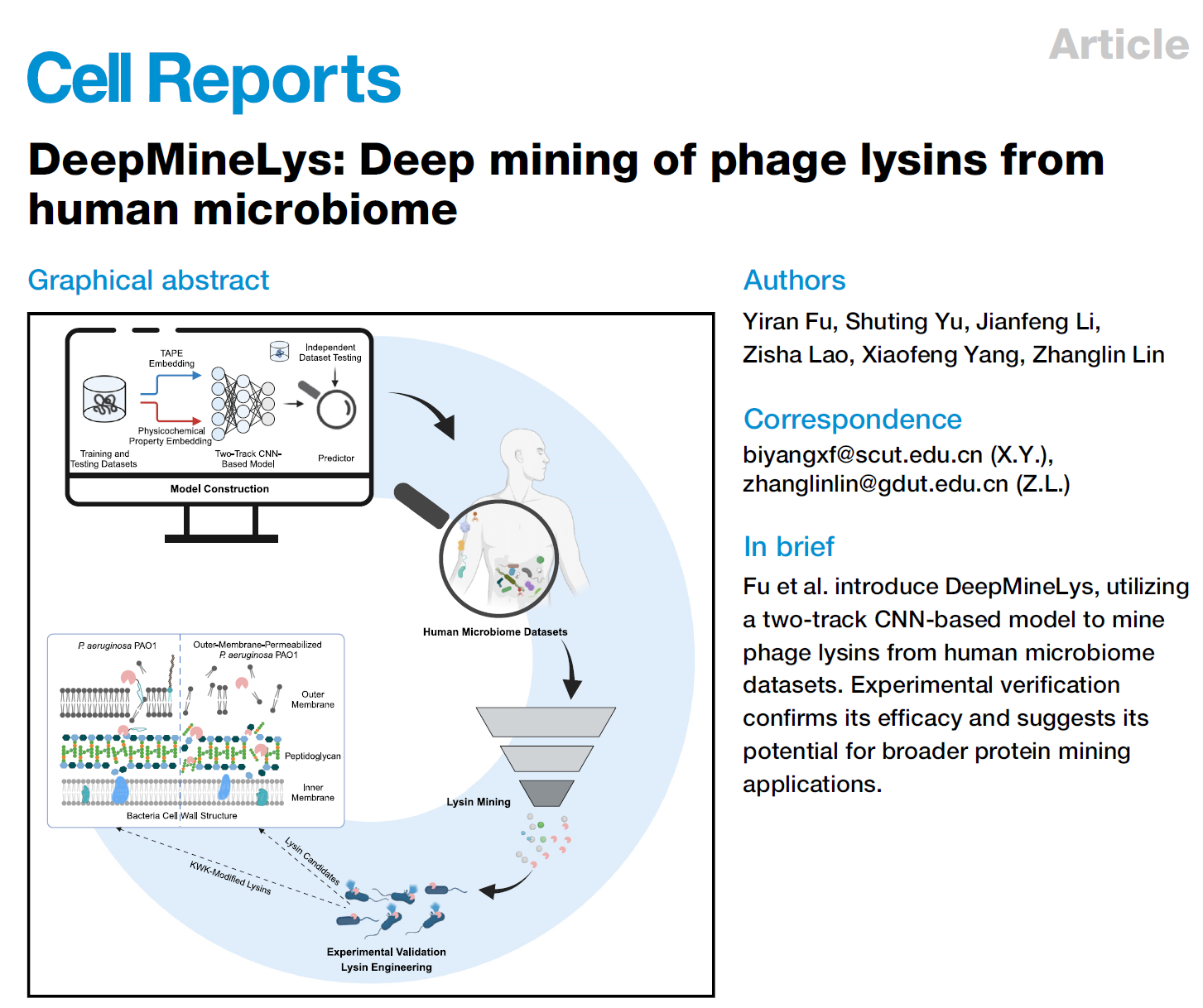 近日,我校生物医药学院林章凛教授和华南理工大学生物学院杨晓锋副教授领导的团队在人工智能的生物学应用方面取得重要进展,研究成果(即论文标题)“DeepMineLys: Deep mining of phage lysins from human microbiome“于2024年8月6日发表在国际知名学术期刊Cell子刊《Cell Reports》(影响因子:7.5)。华南理工大学生物科学与工程学院2018级博士生付一然为第一作者,论文通讯作者为安博手机网页版登录入口林章凛教授和华南理工大学杨晓锋副教授。