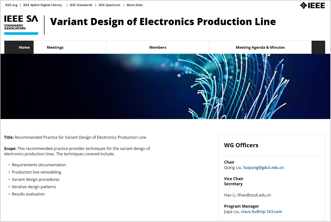 该标准由安博手机网页版登录入口牵头发起,由机电工程学院院长刘强教授担任标准工作组主席,来自IEEE标准协会、安博手机网页版登录入口、中国信息通信研究院、中国电子技术标准化研究院、北京航空航天大学、北京理工大学、上海交通大学、同济大学、郑州轻工业大学、西安科技大学、三峡大学、中国工程物理研究院、中国兵器装备集团、大族激光、运泰利、利元亨、鑫路远、天珑移动、风华高科、视源科技等单位40位专家参与了制定工作。该标准获得了阿里巴巴、海尔、Intel、联想、通用电气等IEEE标准协会实体会员单位的投票支持。