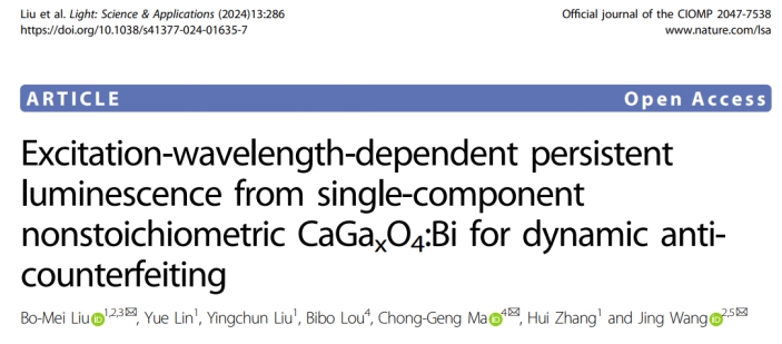 近日,我校轻工化工学院张辉教授领导的研究团队在电光信息技术领域方面取得重要进展。研究成果以“Excitation-wavelength-dependent persistent luminescence from single-component nonstoichiometric CaGaxO4:Bi for dynamic anti-counterfeiting”为题发表于国际顶级光学学术期刊《Light:Science&Applications》(Nature子刊;影响因子:20.6)。我校轻工化工学院刘伯梅副教授是论文第一作者及通讯作者,研究工作依托化学与精细化工广东省实验室揭阳分中心(榕江实验室),安博手机网页版登录入口为论文第一完成单位。