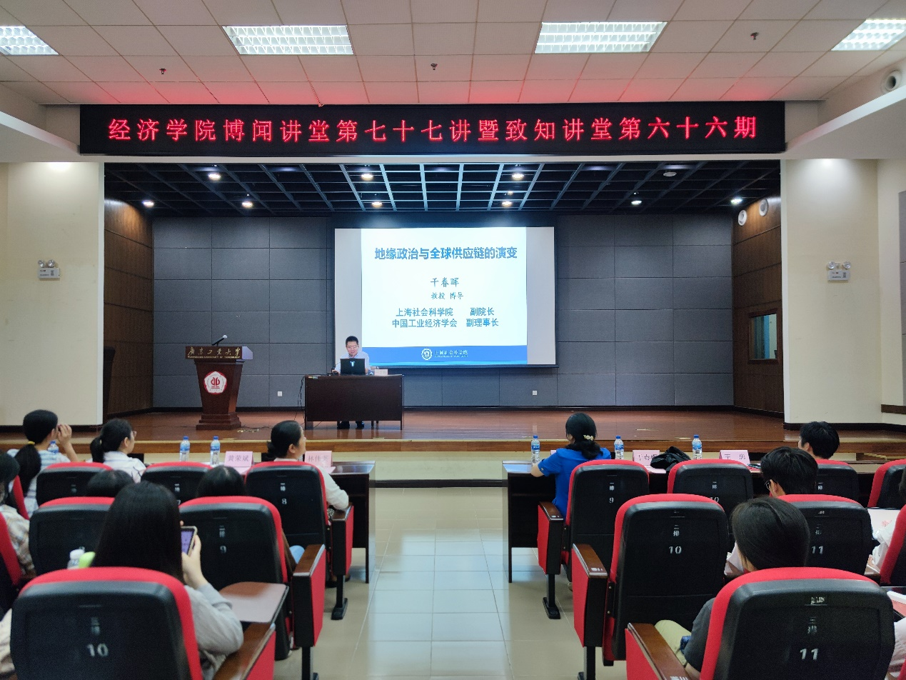 10月19日下午,上海社会科学院副院长、中国工业经济学会副会长、上海市经济学会副会长干春晖教授,在经济学院“博闻讲堂”,为400余名师生作了题为《地缘政治与全球供应链的演变》的学术报告。报告由经济学院院长谢卫红教授主持。