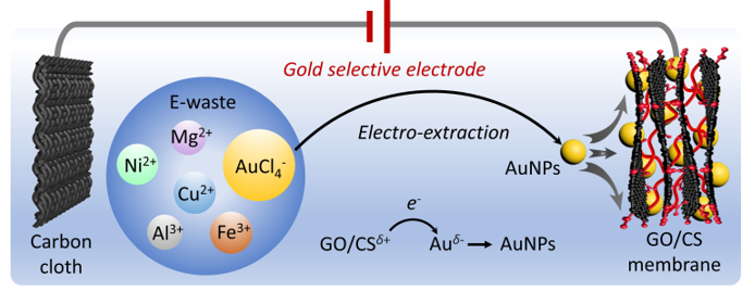 在上述研究的基础上,第二个研究成果以“Two-dimensional electrodes from functionalized graphene for rapid electrochemical gold extraction and reduction from electronic waste”为题发表于《Advanced Science》这一国际顶级学术期刊。该论文探讨了氧化石墨烯/壳聚糖新型复合材料作为金回收电极的重要发现(图2),杨蔻副教授担任第一作者,安博手机网页版登录入口为第一完成单位。