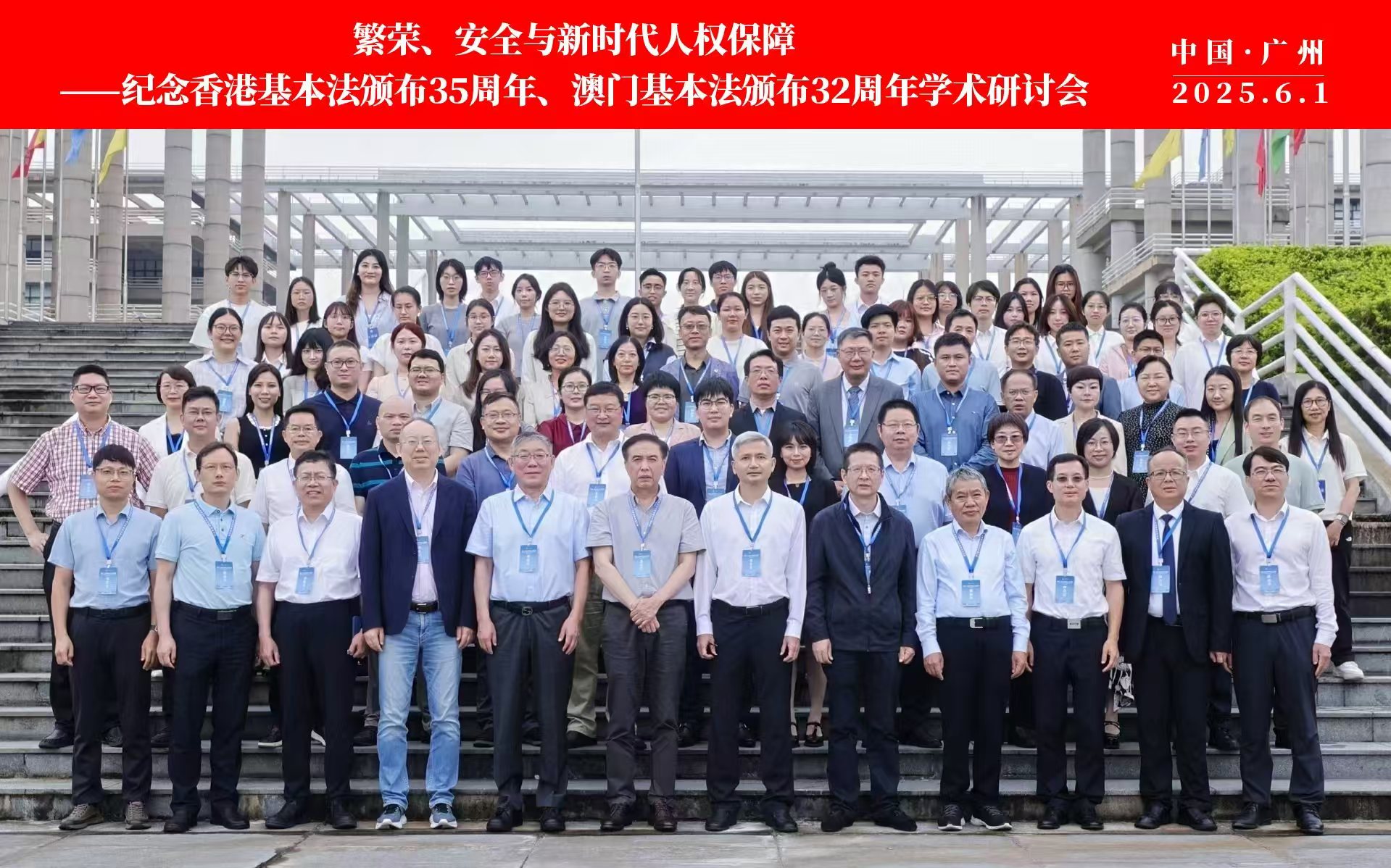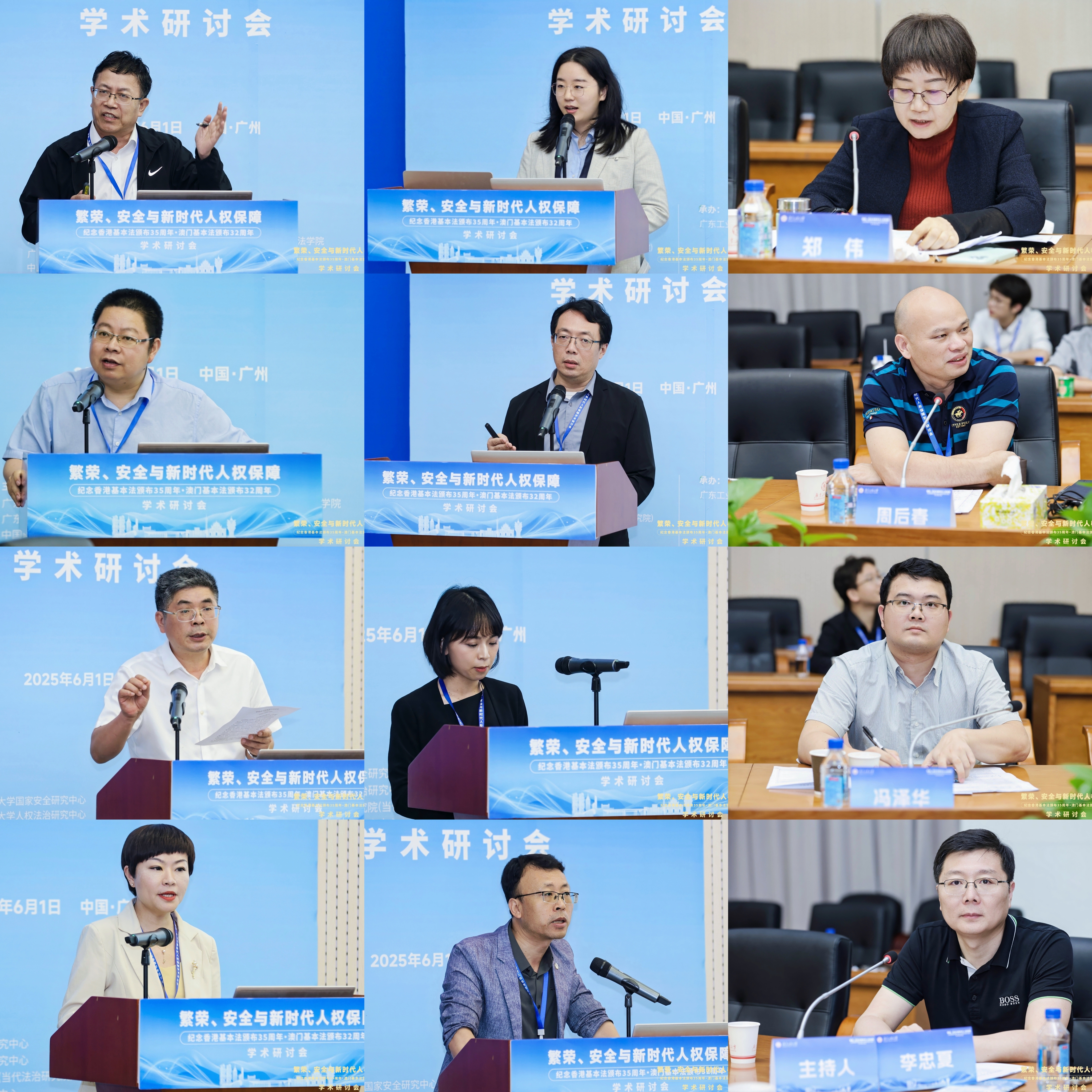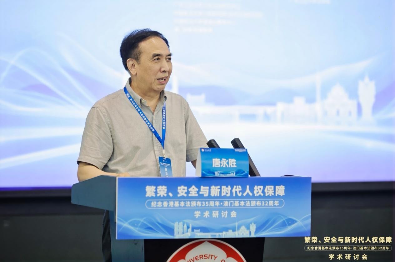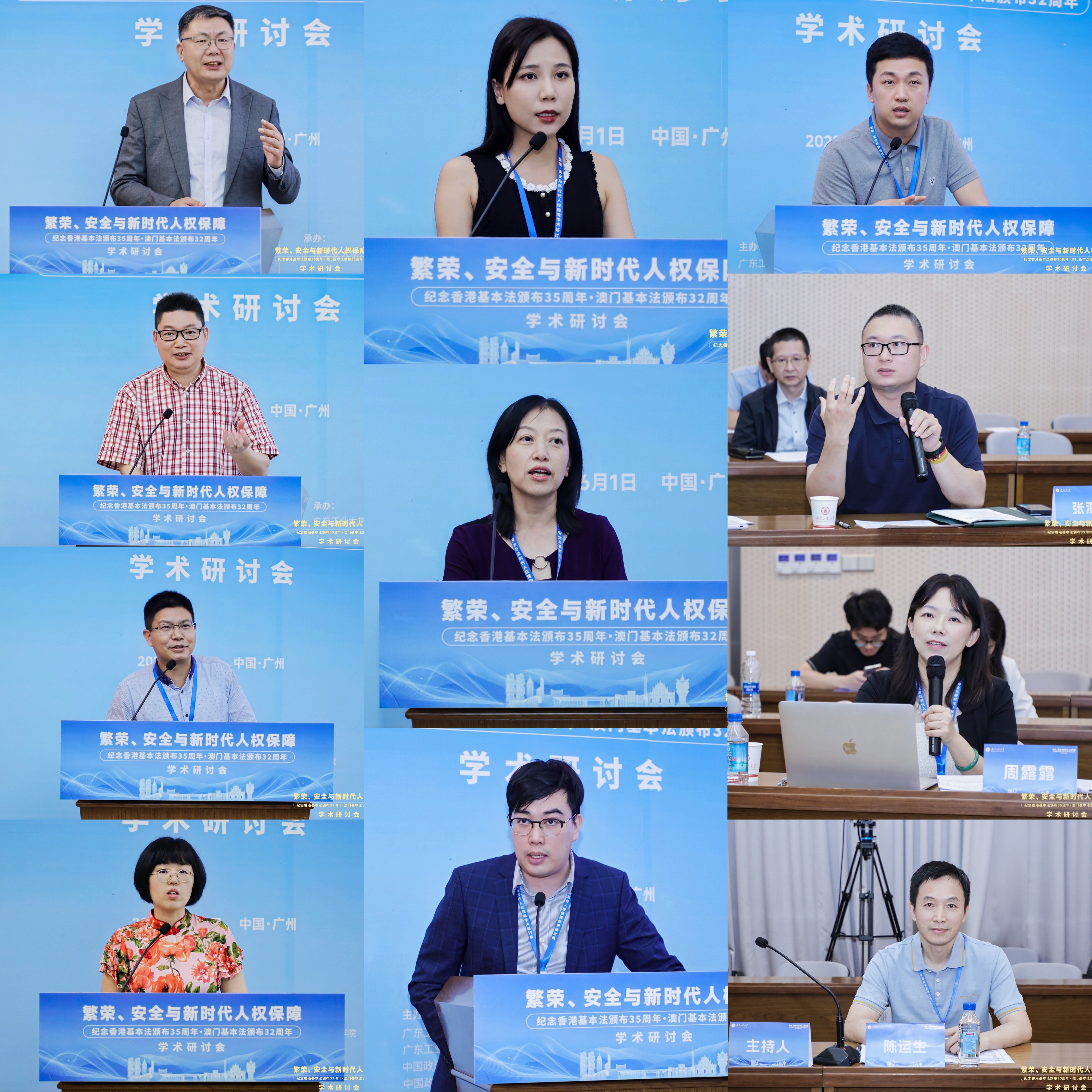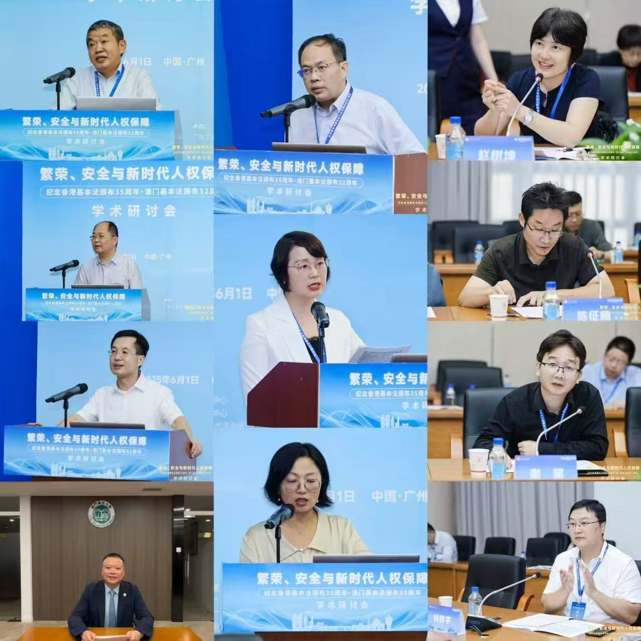 6月1日,“繁荣、安全与新时代人权保障——纪念香港基本法颁布35周年、澳门基本法颁布32周年学术研讨会”在广东广州隆重举行。此次研讨会由安博手机网页版登录入口国家安全研究中心、安博手机网页版登录入口人权法治研究中心、中国政法大学人权研究院(当代法治研究院)、中国政法大学港澳台教育中心以及澳门创新发展智库联合主办,由安博手机网页版登录入口法学院承办。来自国防大学、中国人民大学、中国社会科学院、吉林大学、中南大学、北京理工大学、中央民族大学、中南财经政法大学、华东政法大学、西南政法大学、云南大学、昆明理工大学、贵州财经大学、香港大学、香港城市大学、澳门大学、澳门城市大学、华南理工大学、暨南大学、深圳大学、广东外语外贸大学、广东财经大学、广州大学、肇庆学院、濠江法律学社、香港政策研究所等内地及港澳知名高校、研究机构的超过80位专家学者齐聚一堂,围绕国家安全法治、人权保障实践、粤港澳大湾区区域协同治理等核心议题展开深入研讨。