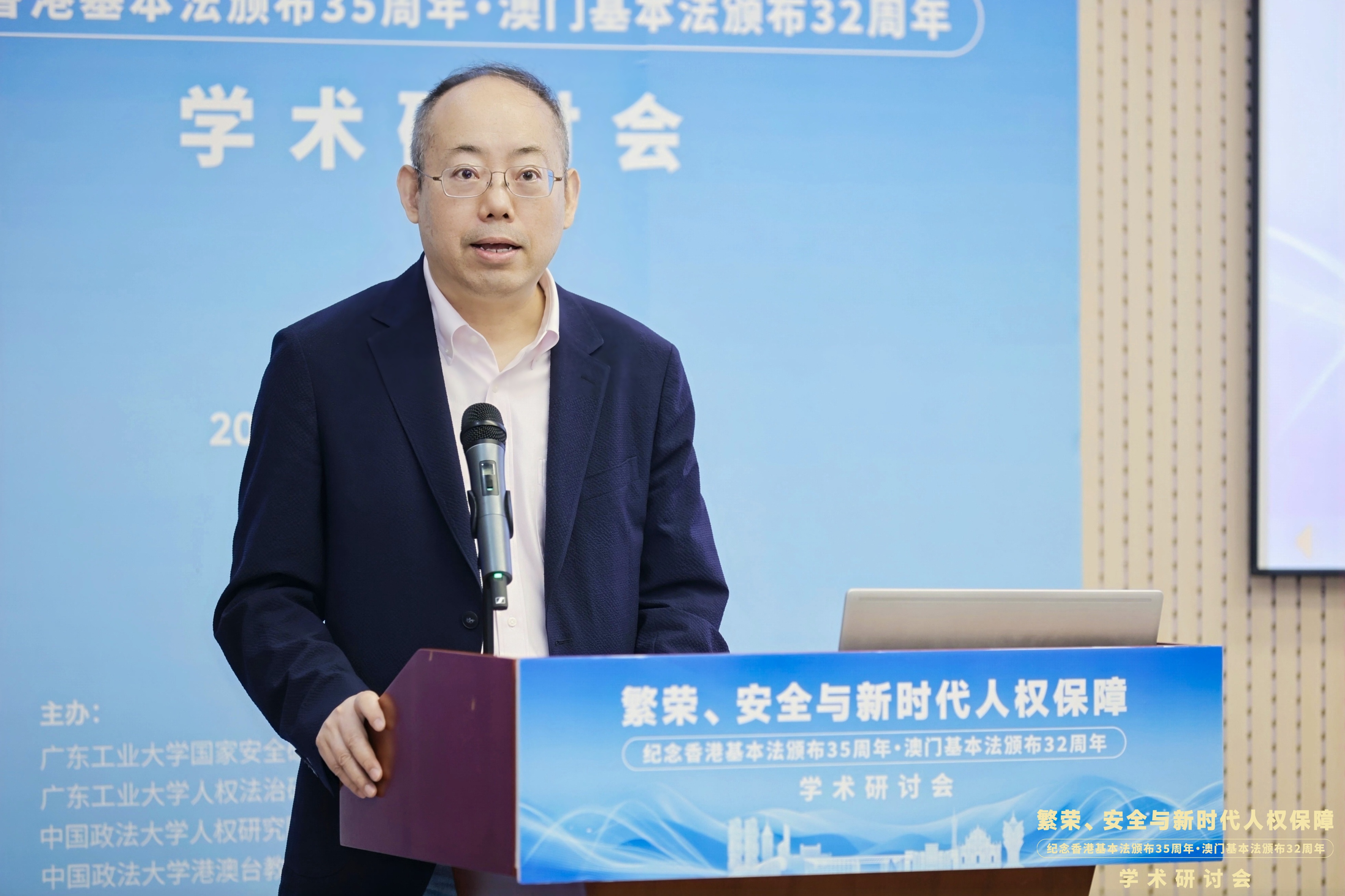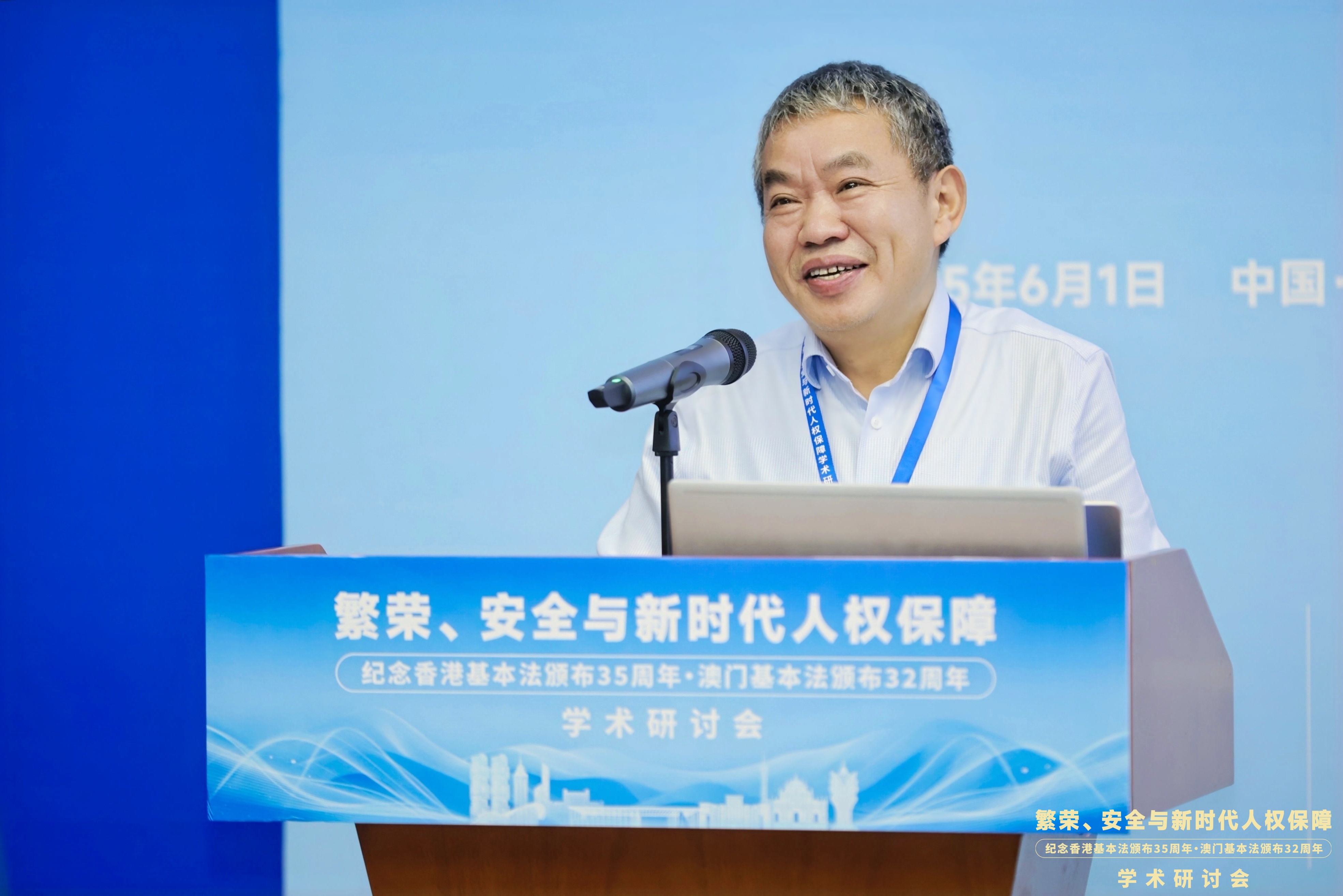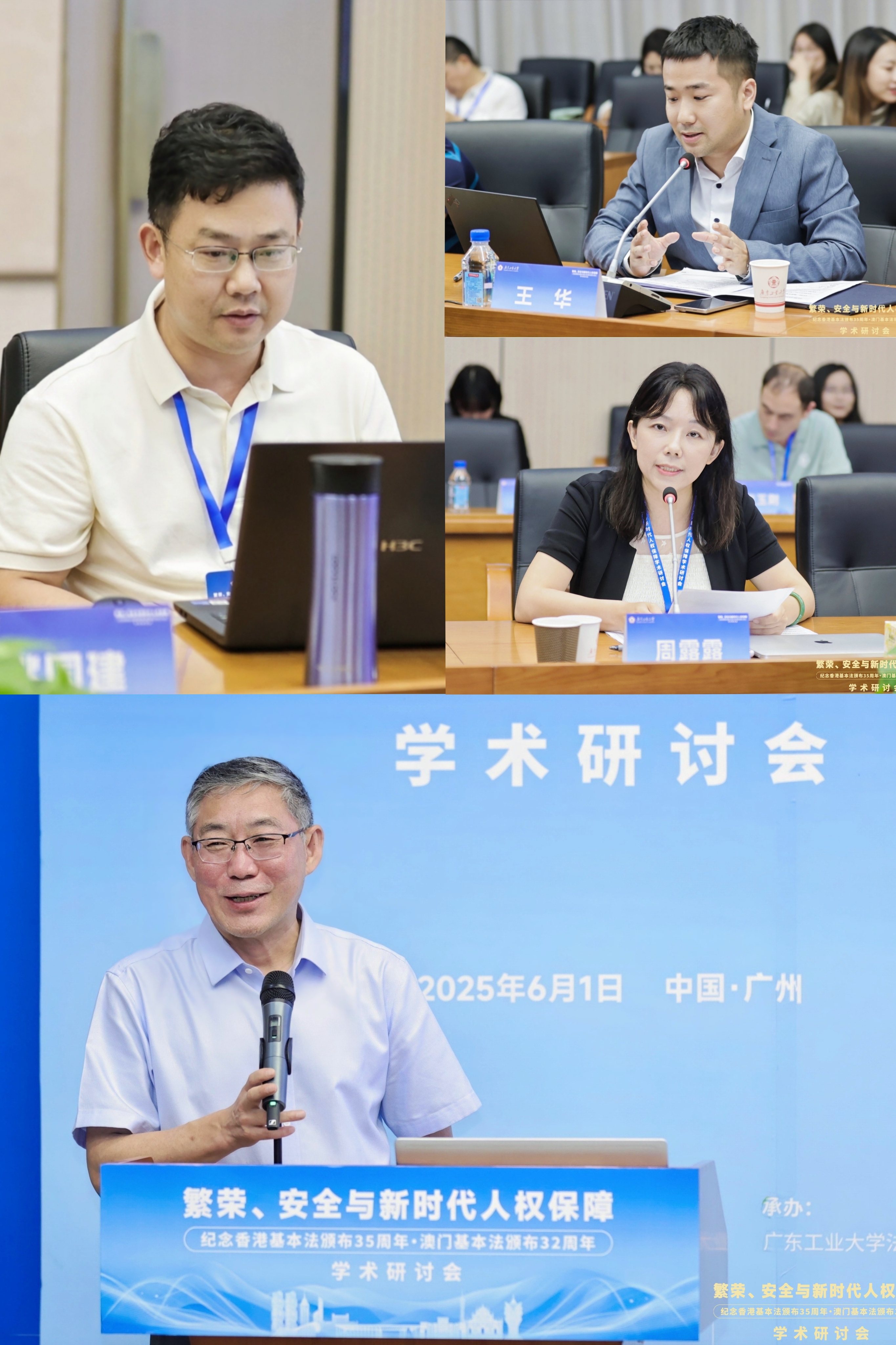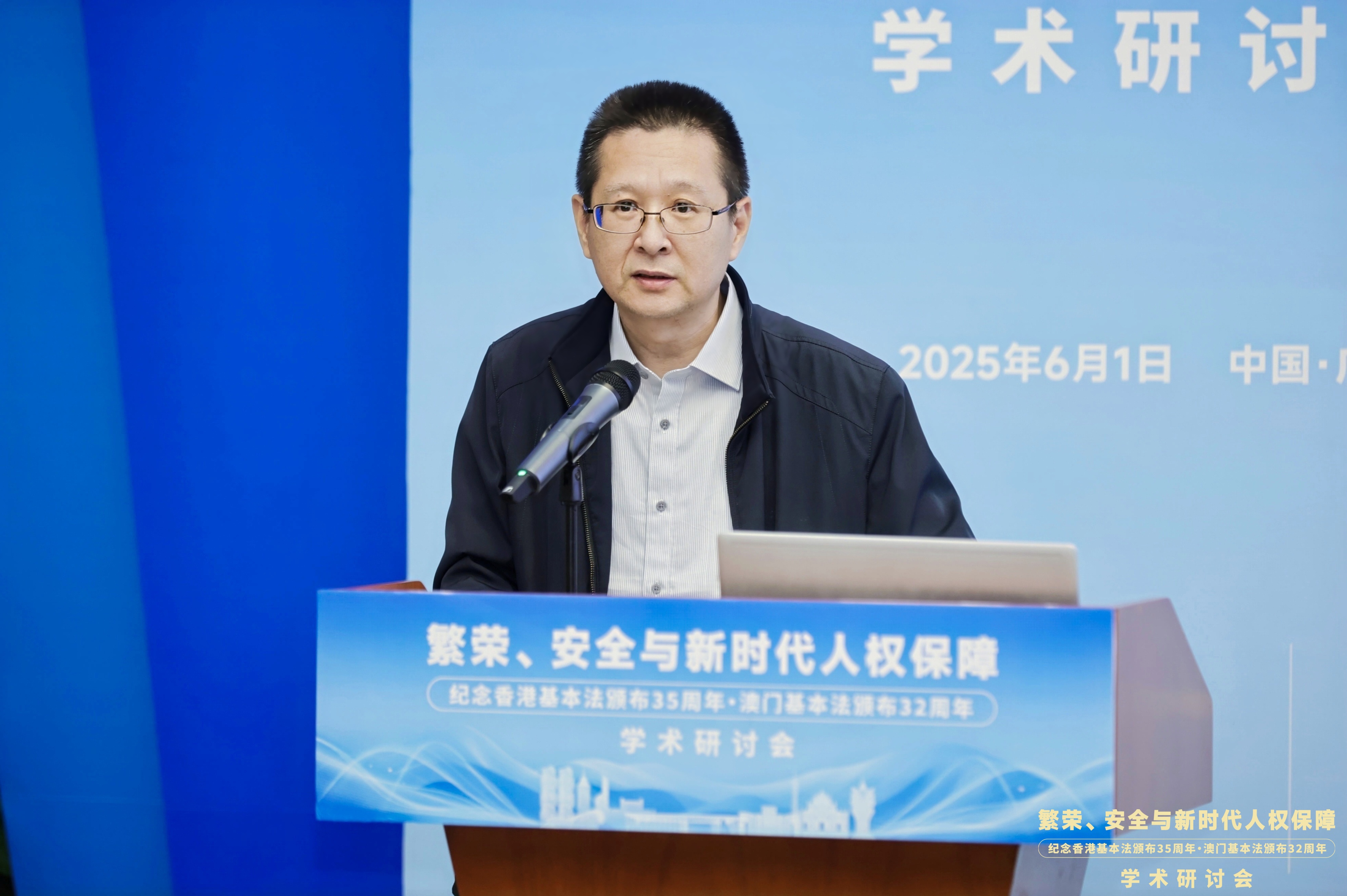 6月1日,“繁荣、安全与新时代人权保障——纪念香港基本法颁布35周年、澳门基本法颁布32周年学术研讨会”在广东广州隆重举行。此次研讨会由安博手机网页版登录入口国家安全研究中心、安博手机网页版登录入口人权法治研究中心、中国政法大学人权研究院(当代法治研究院)、中国政法大学港澳台教育中心以及澳门创新发展智库联合主办,由安博手机网页版登录入口法学院承办。来自国防大学、中国人民大学、中国社会科学院、吉林大学、中南大学、北京理工大学、中央民族大学、中南财经政法大学、华东政法大学、西南政法大学、云南大学、昆明理工大学、贵州财经大学、香港大学、香港城市大学、澳门大学、澳门城市大学、华南理工大学、暨南大学、深圳大学、广东外语外贸大学、广东财经大学、广州大学、肇庆学院、濠江法律学社、香港政策研究所等内地及港澳知名高校、研究机构的超过80位专家学者齐聚一堂,围绕国家安全法治、人权保障实践、粤港澳大湾区区域协同治理等核心议题展开深入研讨。