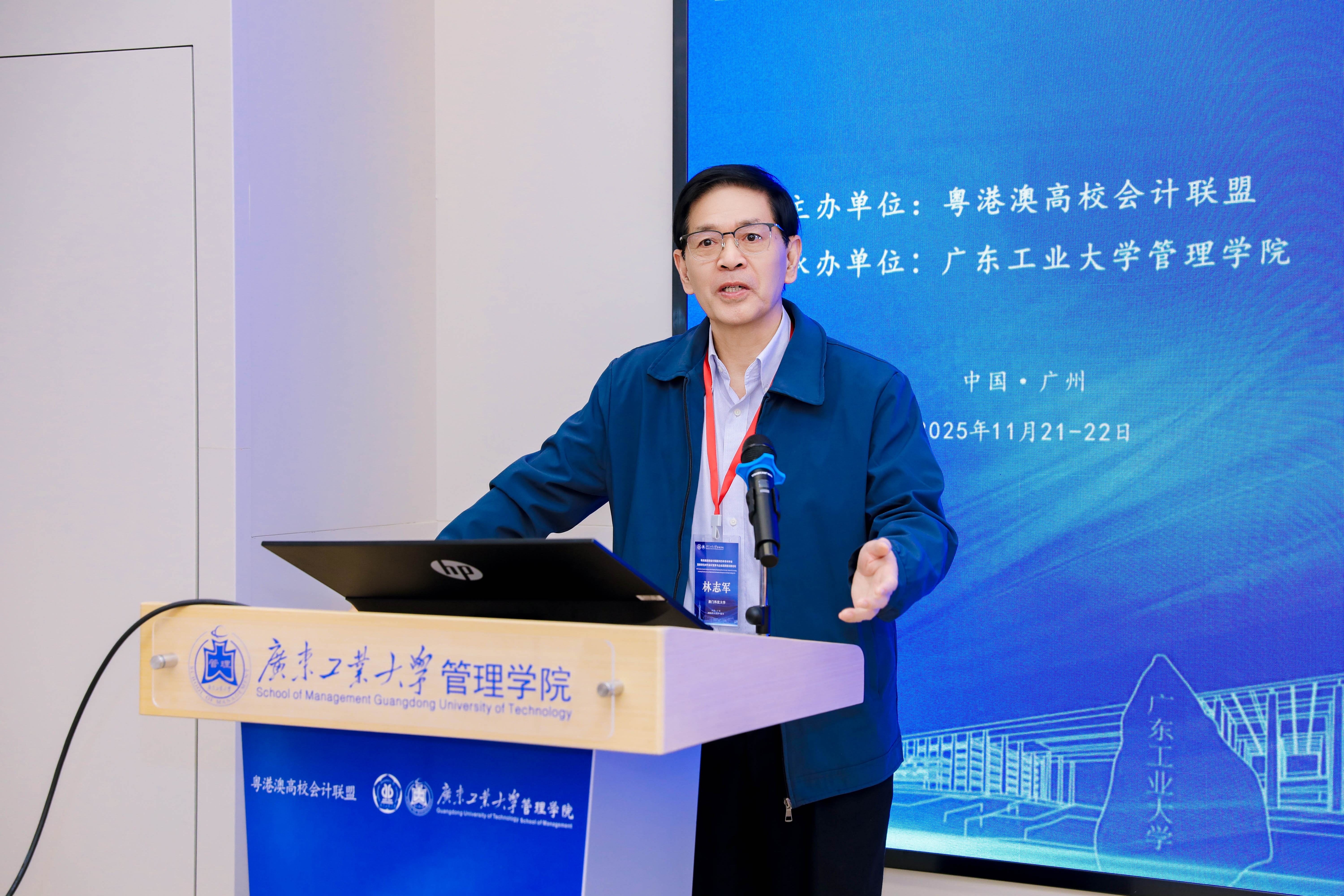 随后,粤港澳高校会计联盟前任主任、澳门科技大学校长高级顾问、澳门会计研究中心主任林志军教授作会议总结。林志军教授指出,本次年会聚焦时代核心命题,是一场高规格、高质量、高融合度的学术盛会,取得了丰硕成果。他代表主办方对年会的圆满举办表示热烈祝贺,向承办方的精心筹备、报告嘉宾的精彩分享以及全体参会者的热情参与致以由衷感谢。