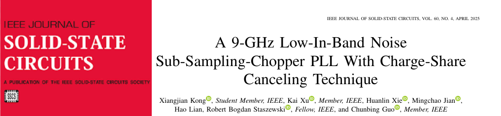 近日,我校集成电路学院郭春炳教授团队在固态电路领域国际顶尖期刊《IEEE Journal of Solid-State Circuits》(JSSC)发表题为《A 9-GHz Low In-Band Noise Sub-Sampling-Chopper PLL with Charge-Share Cancelling Technique》的研究论文。论文的第一作者为集成电路学院博士研究生孔祥建,集成电路学院郭春炳教授为论文的唯一通讯作者,安博手机网页版登录入口为论文的第一完成单位。