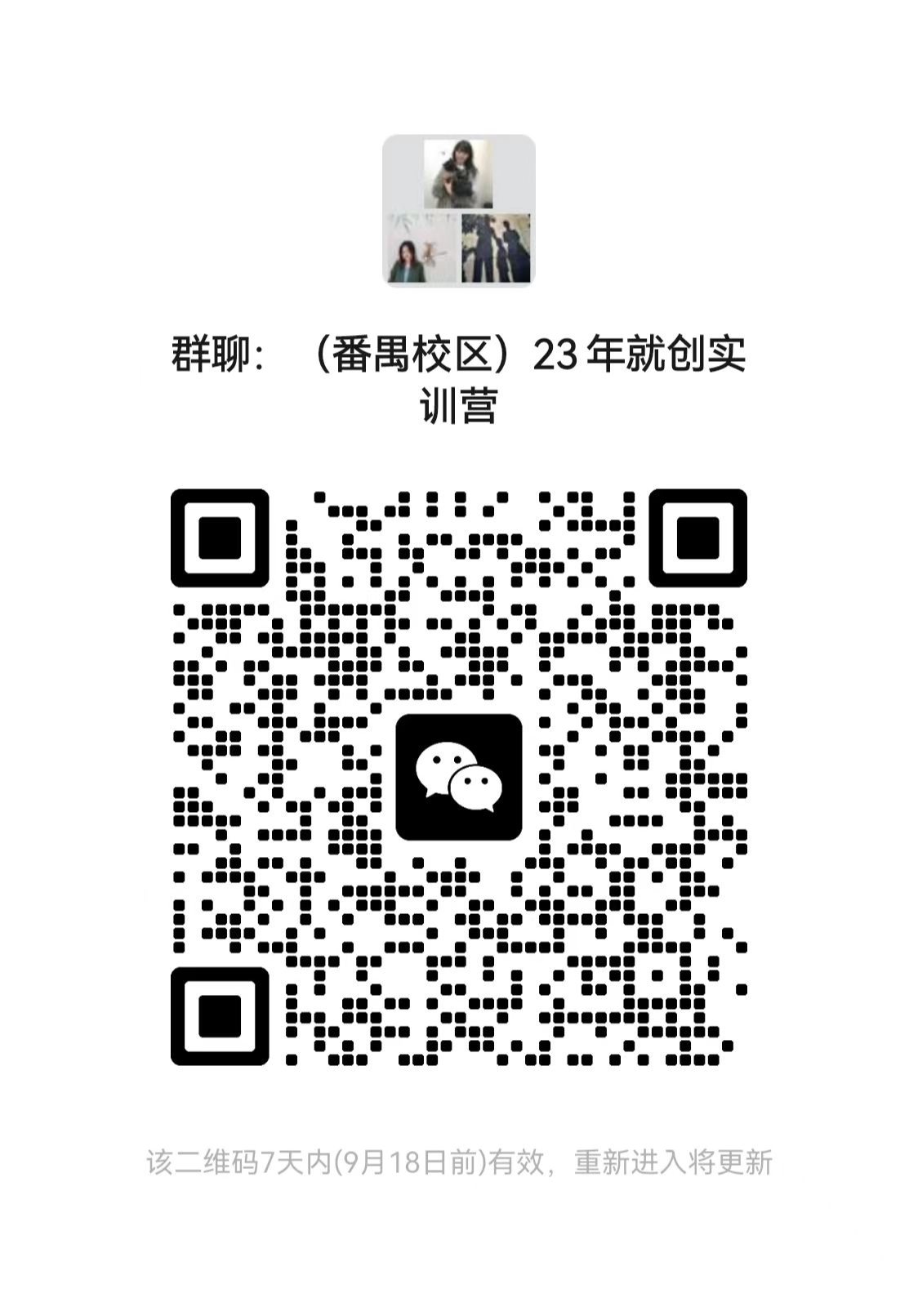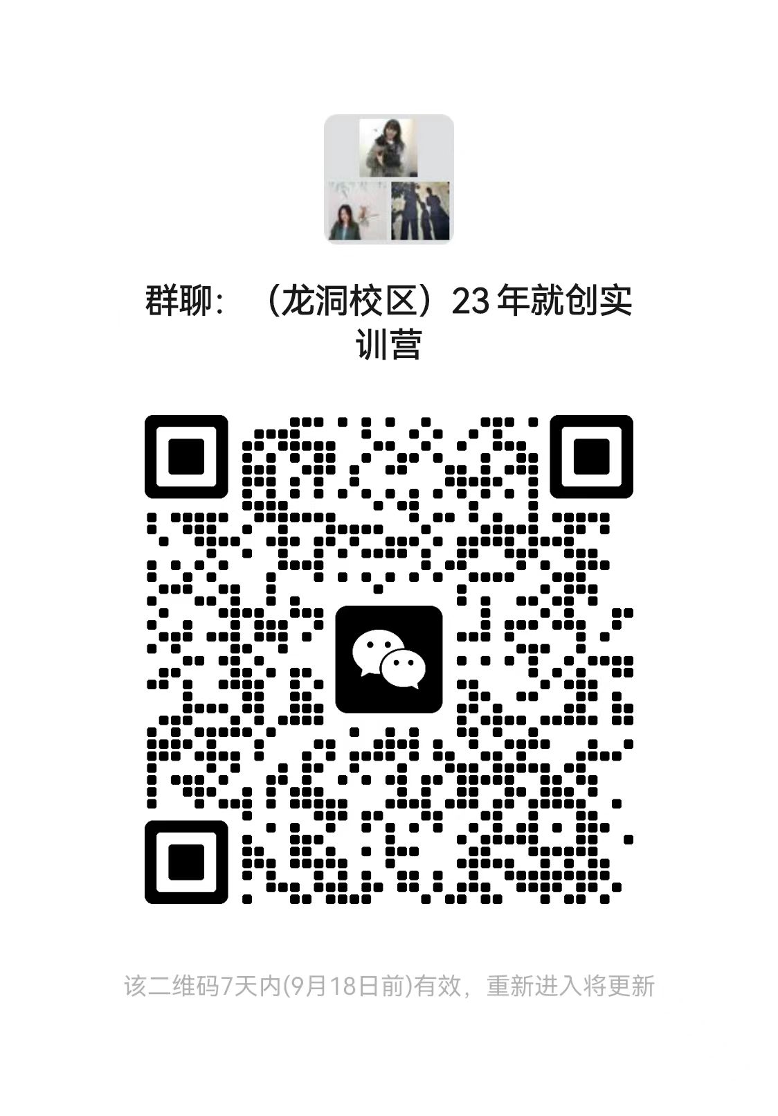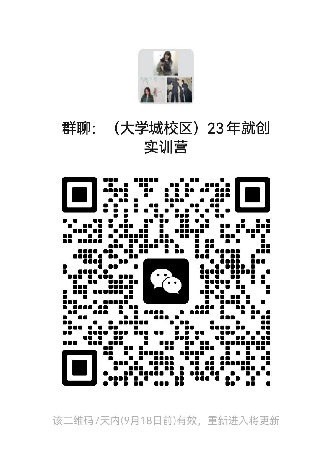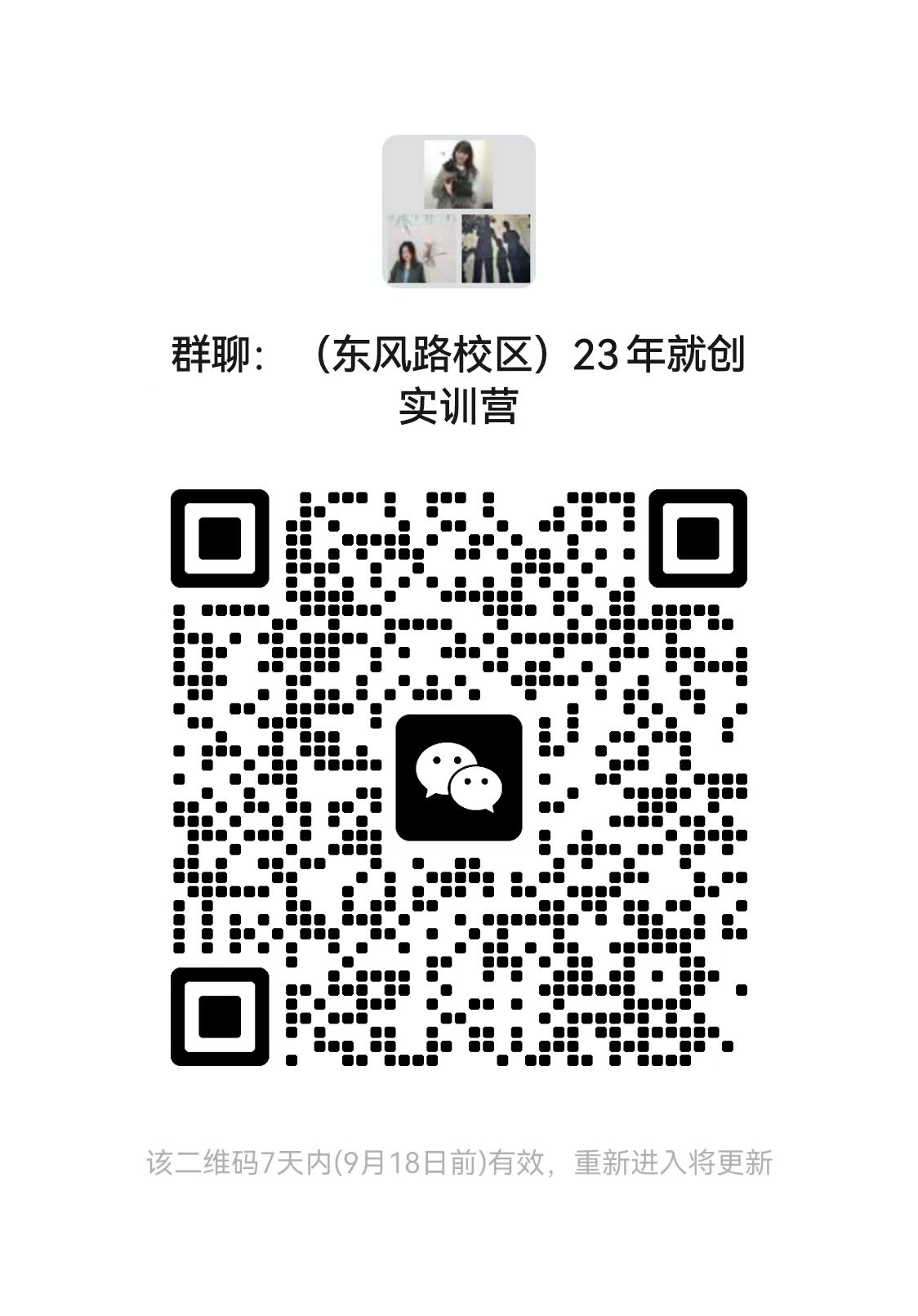 请有意向参加的同学扫码进入对应的校区微信群,后续培训报名及安排在群内发出,不再另行通知。每期训练营规模原则上不超过40人,报名人员满25人达到开营条件。(根据各校区报名情况,确定培训地点,原则上同一校区报名人数满25人、有开展互动式培训条件的,线下培训将在自身校区开展)