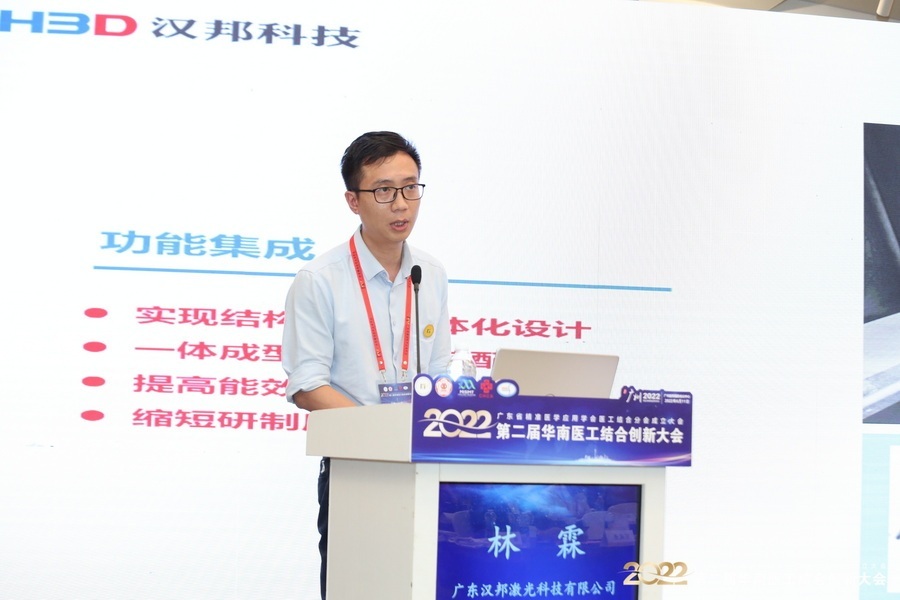 广东汉邦激光科技有限公司产品部经理林霖介绍了金属3D打印在医疗市场的优势、应用规模、价值以及生产流程,同时对医疗用打印设备的性能、控制系统等的最新发展。