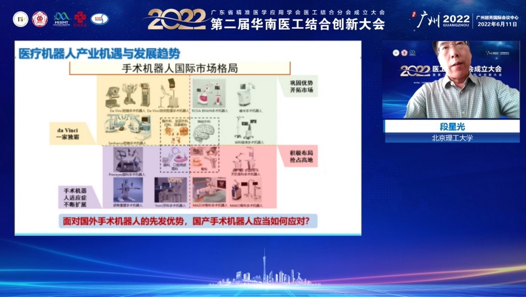 北京理工大学段星光教授介绍了腹腔镜手术机器人、支气管镜手术机器人、经自然腔通道和血管介入手术机器人、人机协同智能操作机器人等医疗机器人的核心技术以及价值赛道,同时也指明了未来“十四五”智能机器人的发展方向。