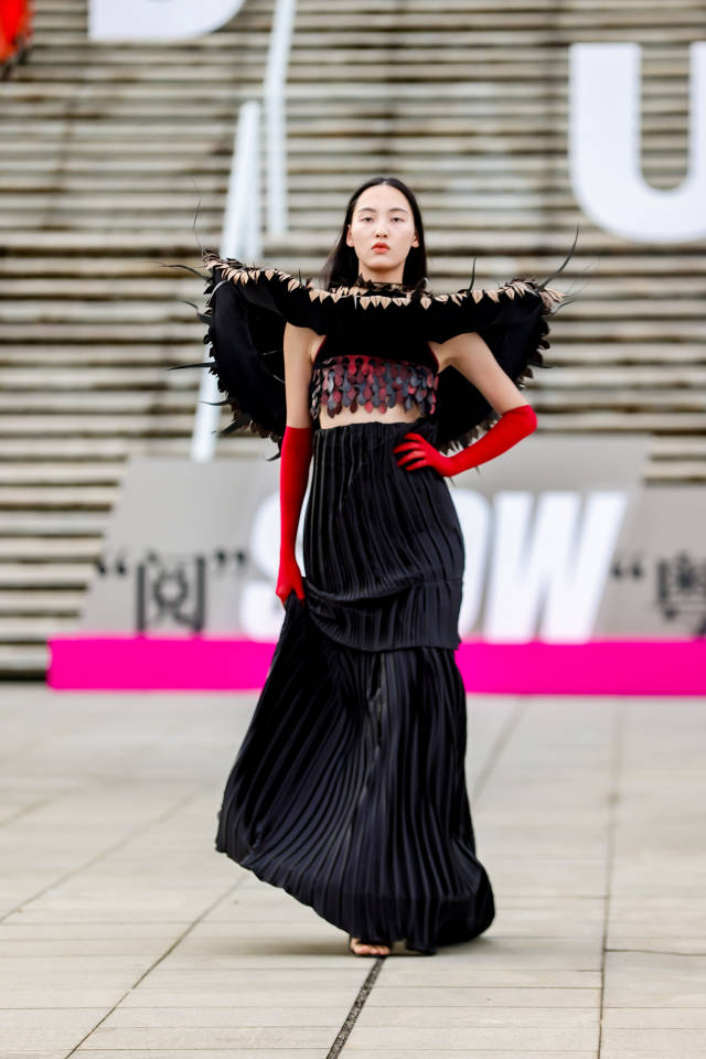 此次展演以“‘阅’SHOW‘粤’时尚”为主题,分为“荣耀传承”“荣耀共创”“荣耀归来”三个篇章,从文化传承、都市潮牌、创意风尚三大设计主题出发,展示了80余套新潮服装。
