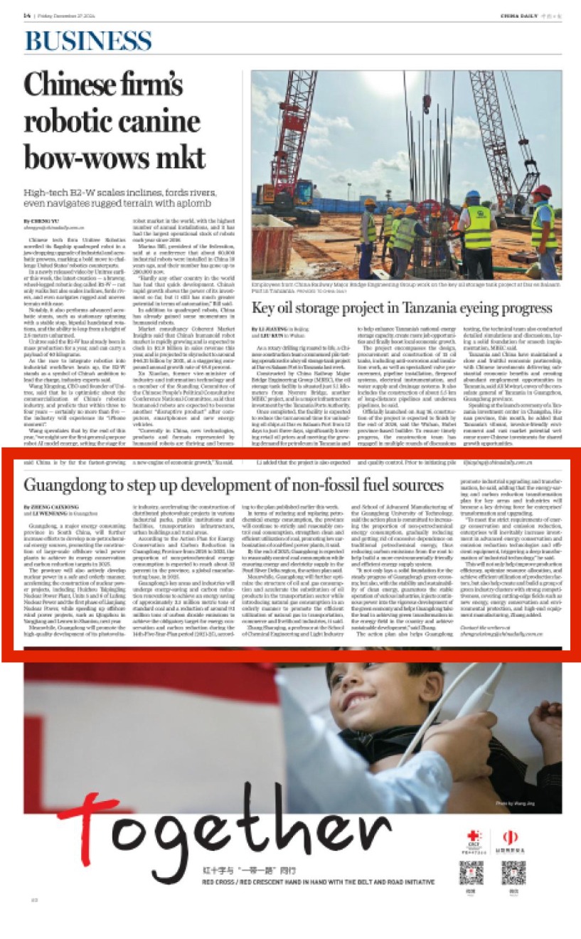 "It not only lays a solid foundation for the steady progress of Guangdong's green economy, but also, with the stability and sustainability of clean energy, guarantees the stable operation of various industries, injects continuous power into the vigorous development of the green economy and helps Guangdong take the lead in achieving green transformation in the energy field in the country and achieve sustainable development," said Zhang.