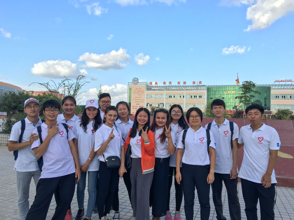 2017年8月17日在新疆喀什地区,志愿者杨晓华(右三)参加与佛山青年团的交流活动。(受访者供图)