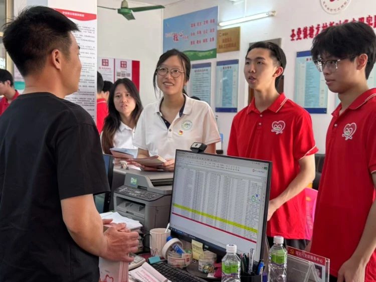 为扩大政策宣传覆盖面,让更多潜在受益群体知晓国家资助政策,实践团成员与圣堂镇副镇长刘壤蔚、圣堂镇塘龙村委会书记吴素霞在塘龙村党群服务中心交流,依托村镇阵地优势强化校地协作,构建 “政府搭台、学校唱戏、村委助力” 的宣传网络。通过村委持续发放材料、设立固定咨询站等校地联动举措,让政策信息融入乡村日常,扩大政策覆盖面。此举摸清当地发展实情与需求,确保政策信息在基层的可及性和长效传播,巩固政策下乡成效,为当地居民提供长期、稳定的政策支持。