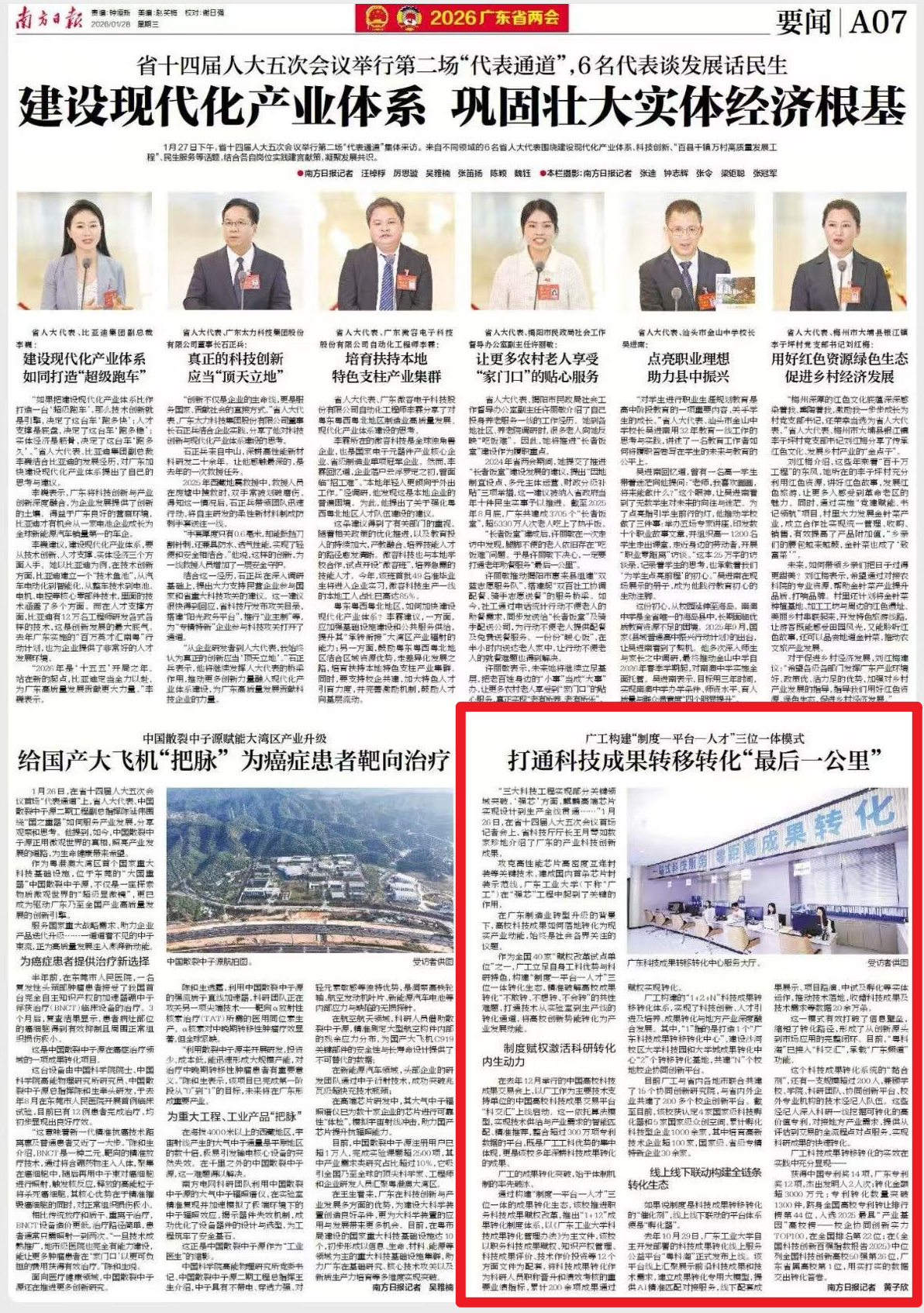网址链接:打通科技成果转移转化“最后一公里”_第49085版:要闻_2026-01-28_南方日报数字报_南方网