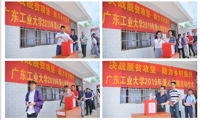 座谈会后,调研队伍来到雅堂村举行“决战脱贫攻坚,助力乡村振兴”爱心捐赠启动仪式。启动仪式由校工会常务副主席陈晖主持,张学理作了动员讲话。
